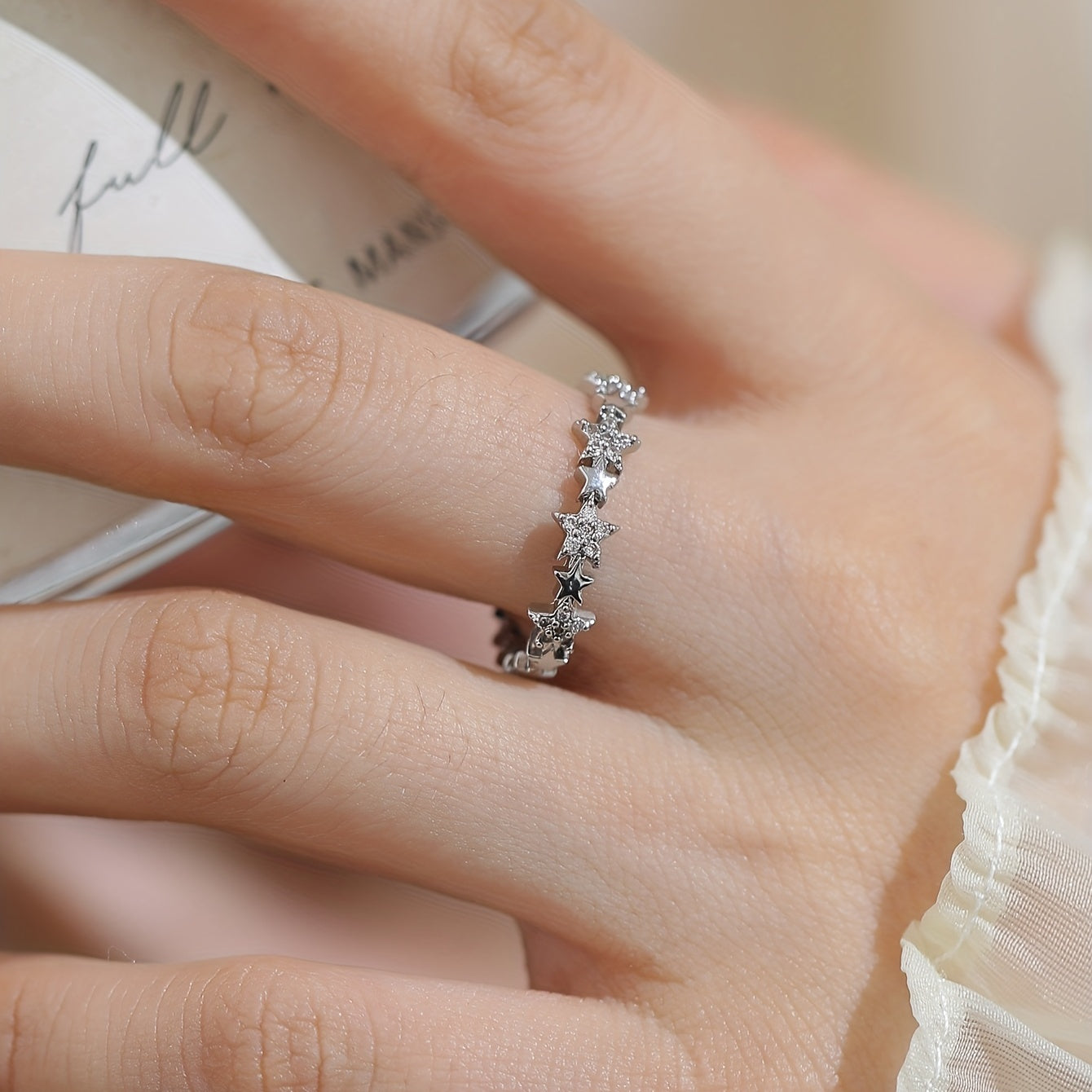 Elevate your daily outfits with this chic Kpop style ring featuring a star design adorned with sparkling rhinestones. A sweet and stylish birthday gift for girls.