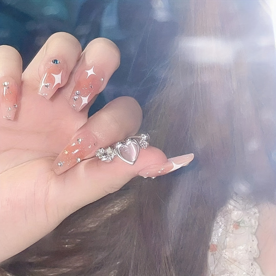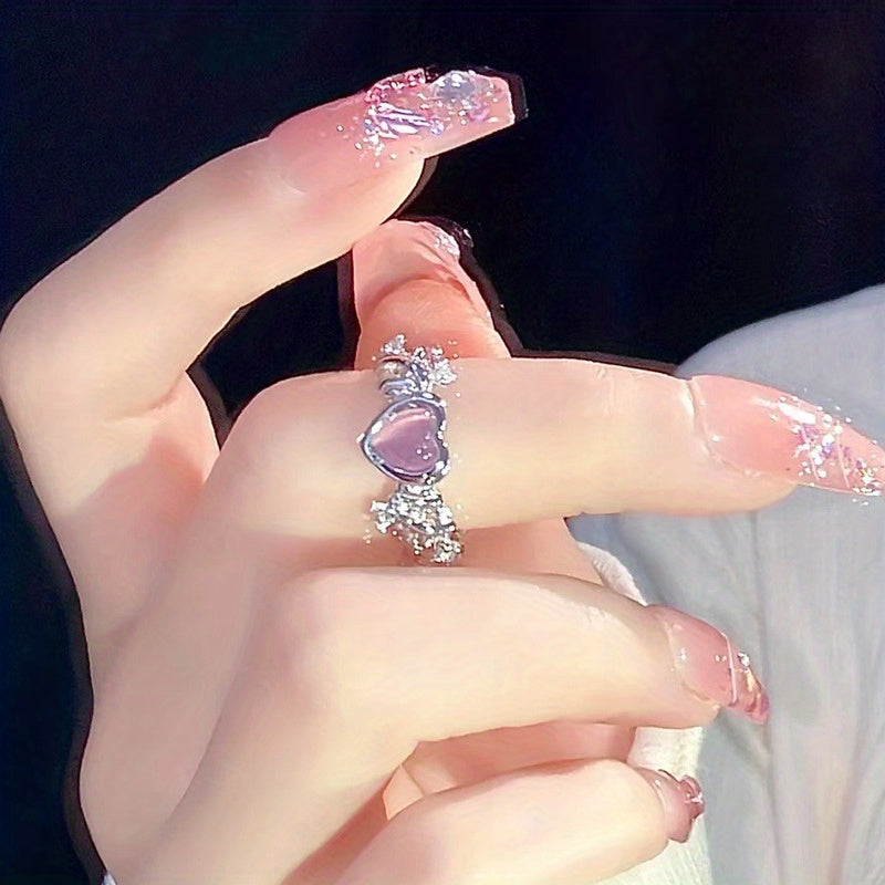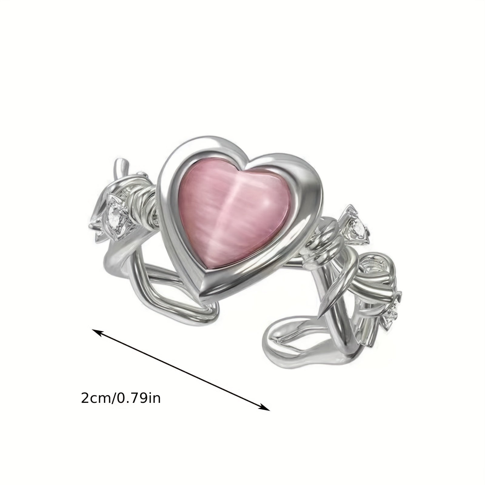 This Kpop Sweet Heart Ring features a pink heart-shaped stone that adds a touch of sweetness to your outfit. It is perfect for daily wear or as a stunning party accessory.