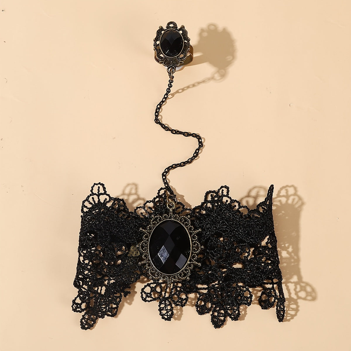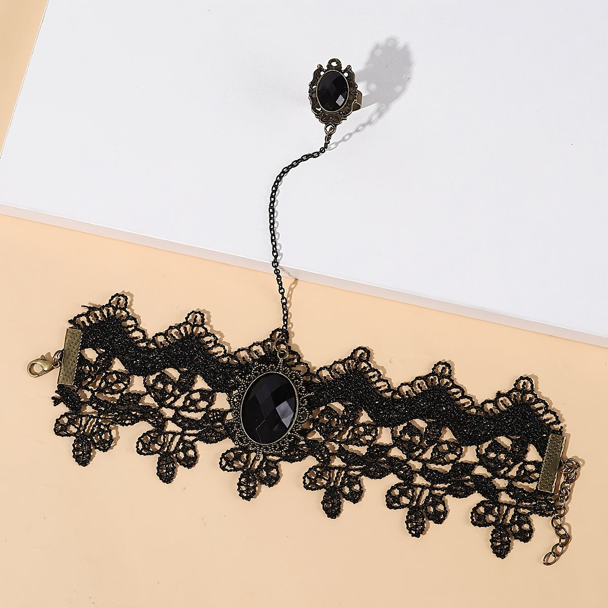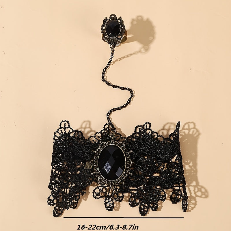 This exquisite lace bracelet ring features an oval cut synthetic gem crystal inlay, perfect for adding a touch of elegance to your outfit.