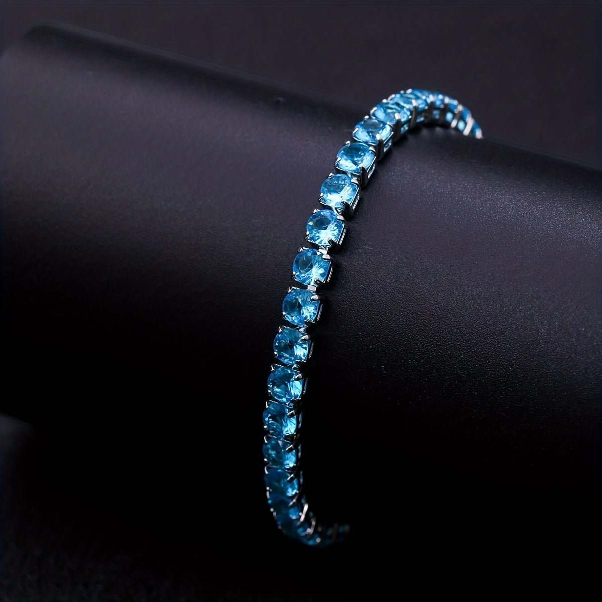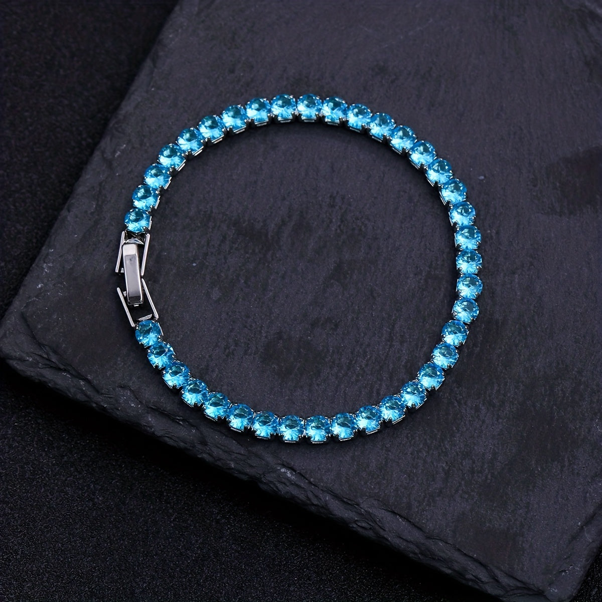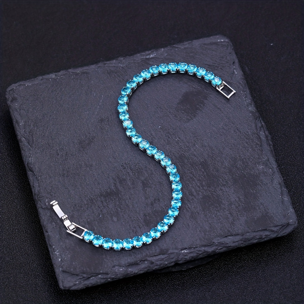 This exquisite tennis bracelet is intricately crafted with Lake Zircon inlays and features a stunning design. Made of high-quality copper, this accessory will add a touch of elegance to your look.
