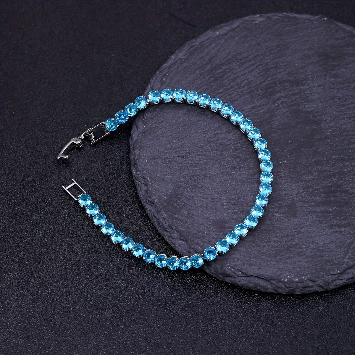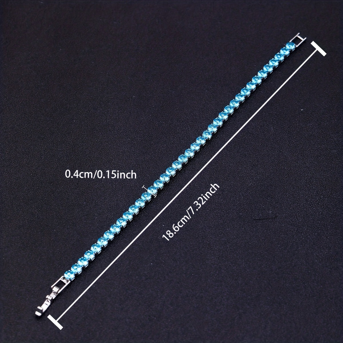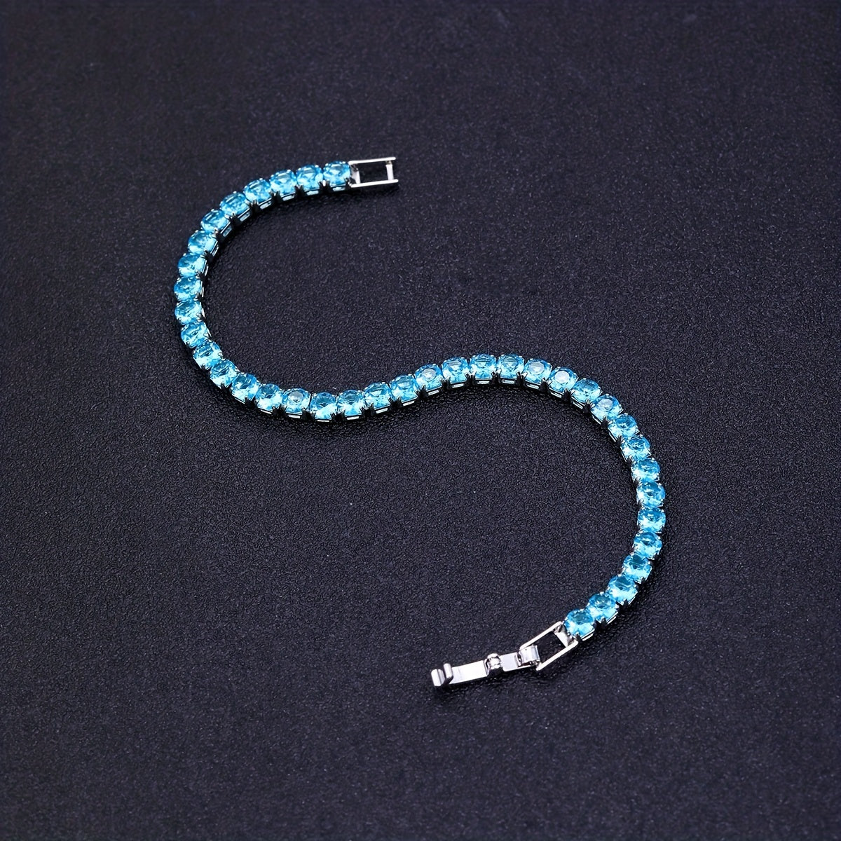 This exquisite tennis bracelet is intricately crafted with Lake Zircon inlays and features a stunning design. Made of high-quality copper, this accessory will add a touch of elegance to your look.