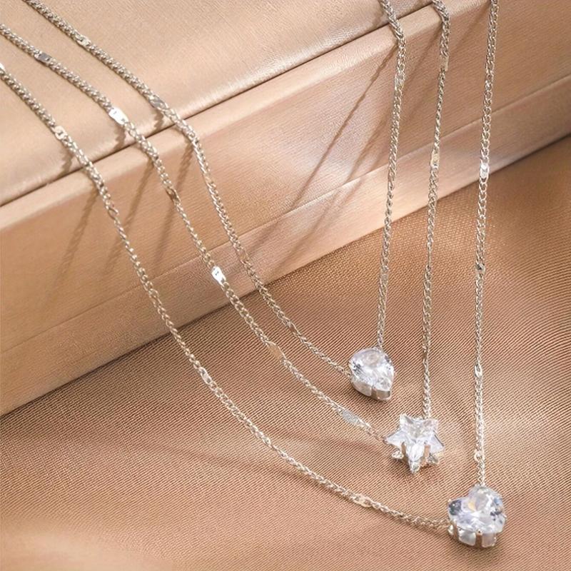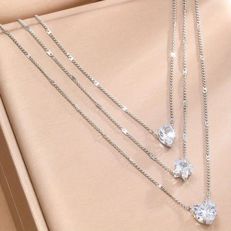 This versatile necklace set features heart, star, and teardrop pendants with rhinestone embellishments. Made of iron chain, this accessory is suitable for daily wear and parties, adding a touch of elegance to your outfit. Perfect for all seasons.