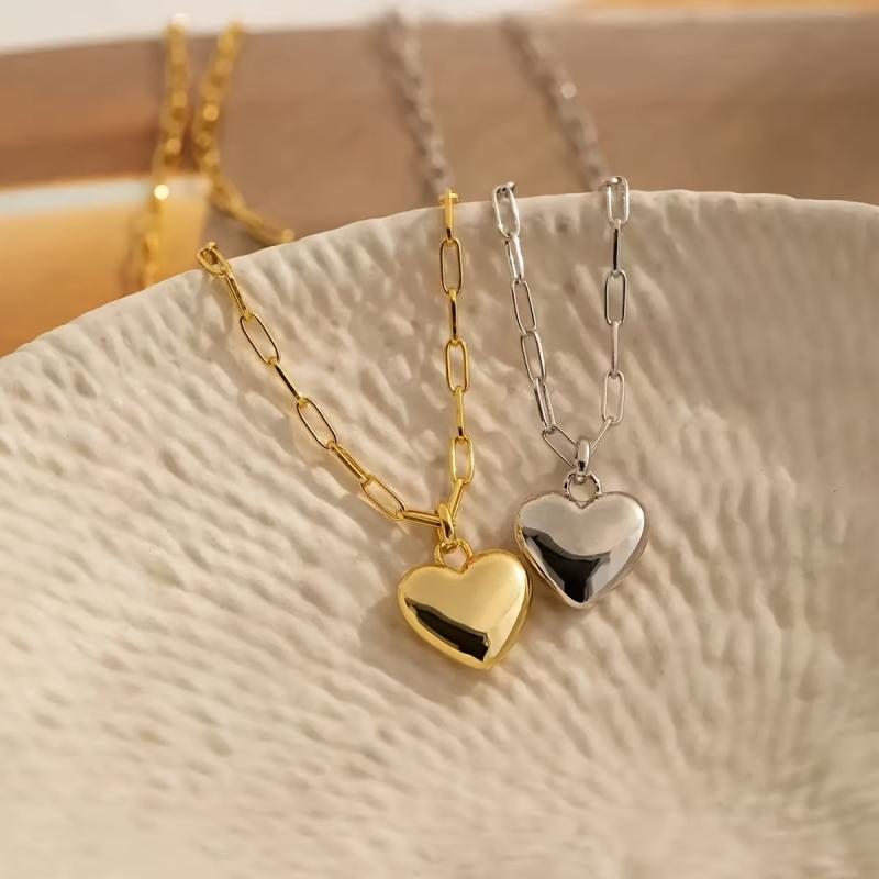 This women's necklace features a stainless steel heart pendant, perfect for casual and versatile wear.