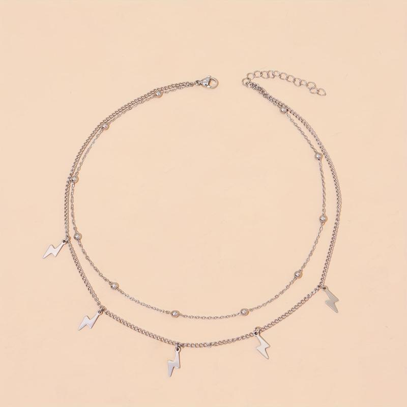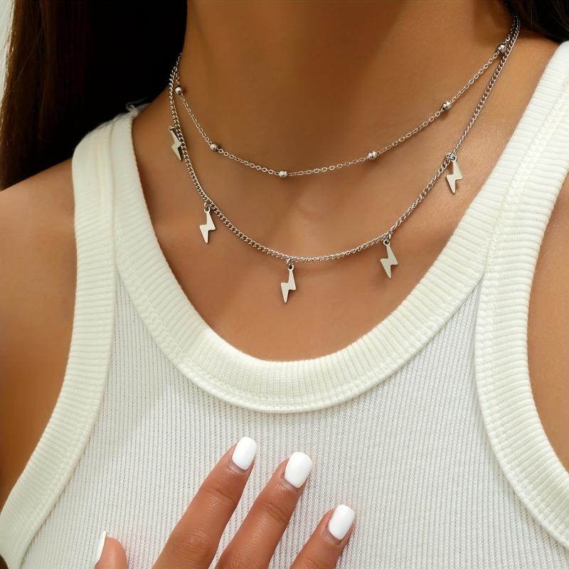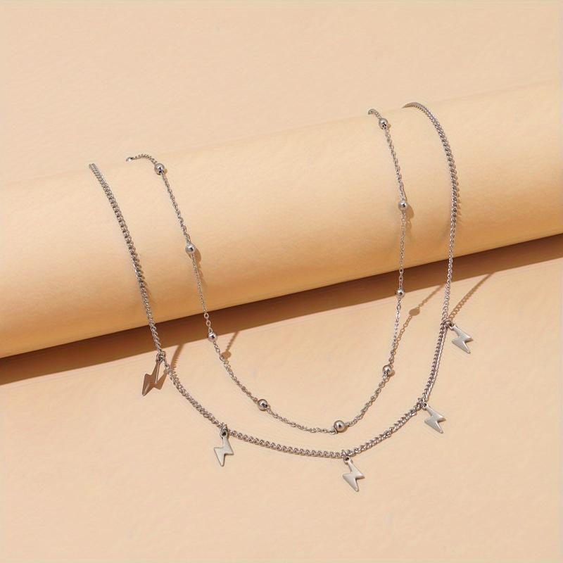 Add a touch of sparkle to your daily look with this lightning pendant necklace. Featuring a double layer design and bead chain, this necklace is perfect for everyday wear.