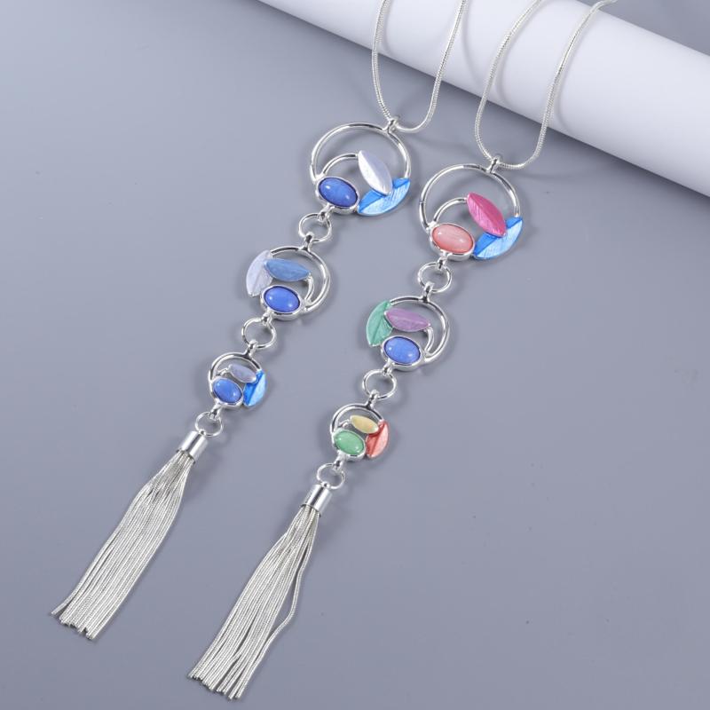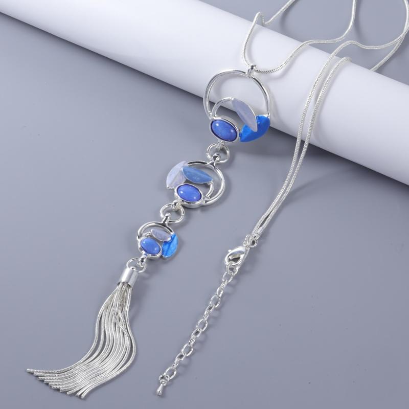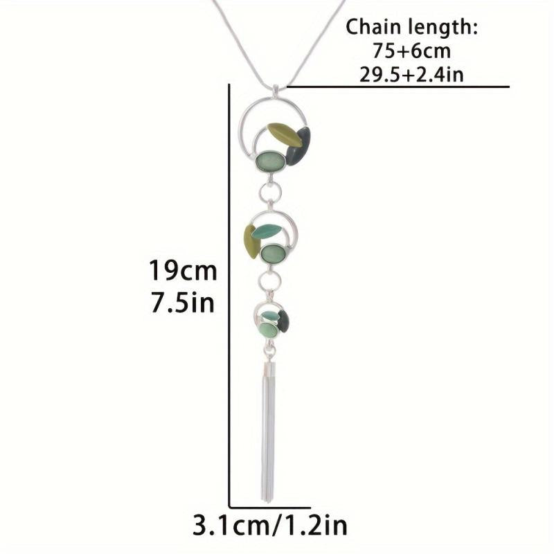 Long Fringe Necklace for Women Summer Vacation Resin Geometric Pendant Jewelry