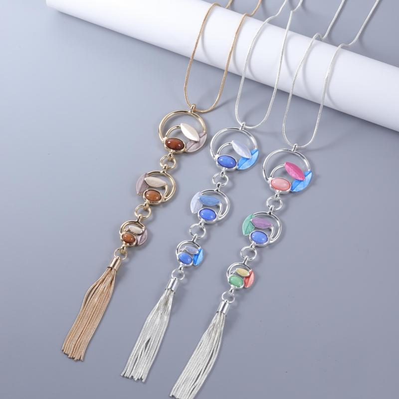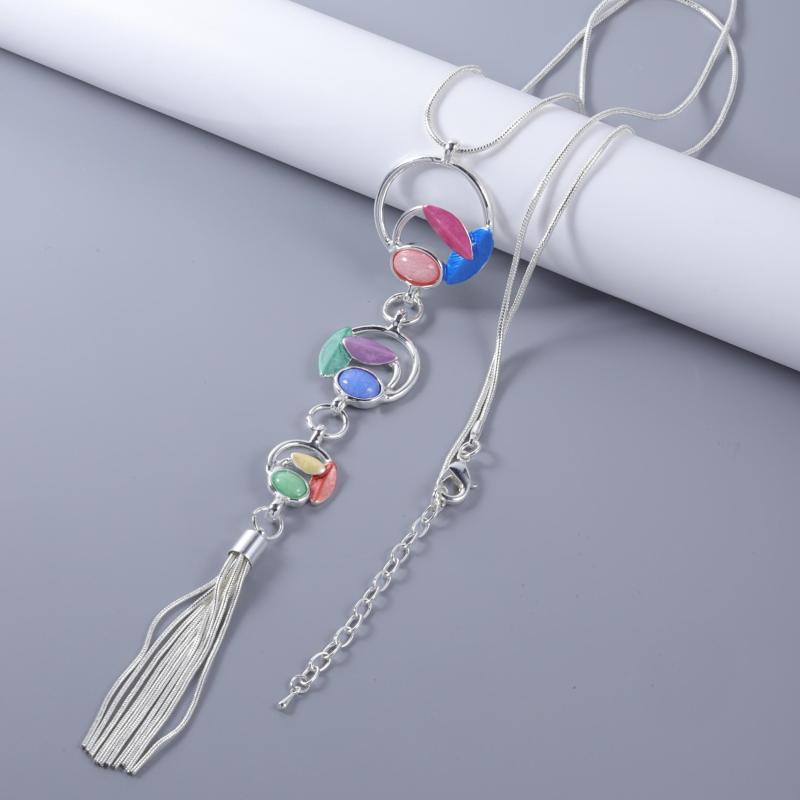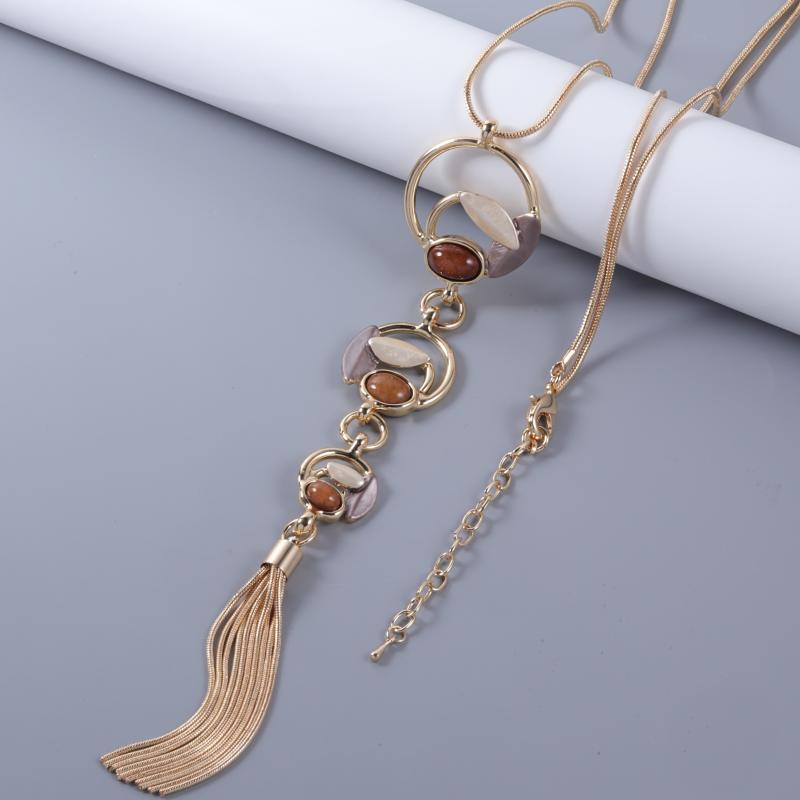 Add a touch of elegance to your outfit with this French style long fringe necklace. Made of high-quality resin, it features a beautiful geometric pendant design. Perfect for summer vacations or as a thoughtful gift.