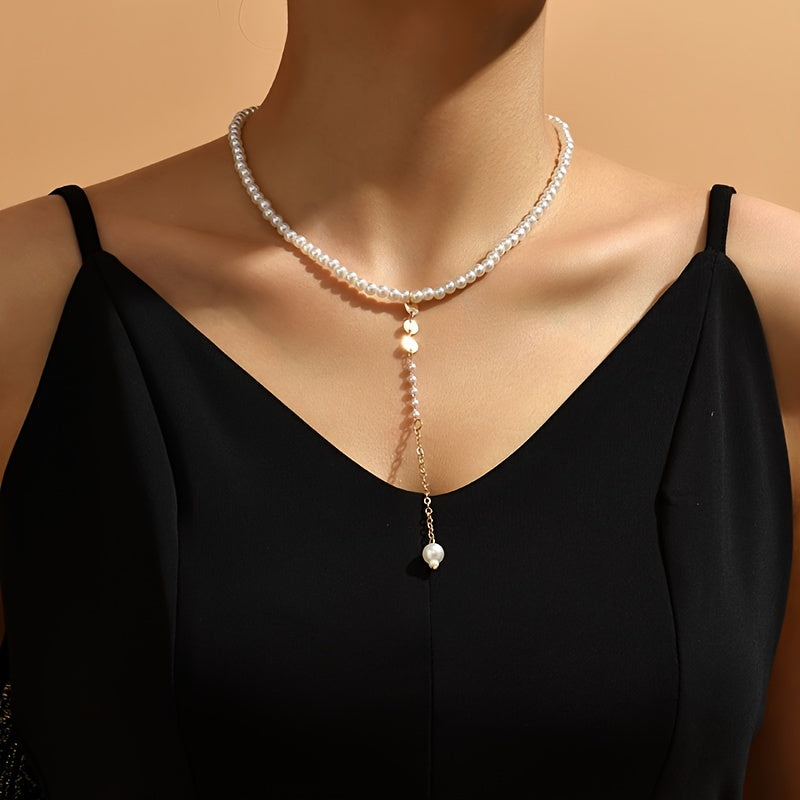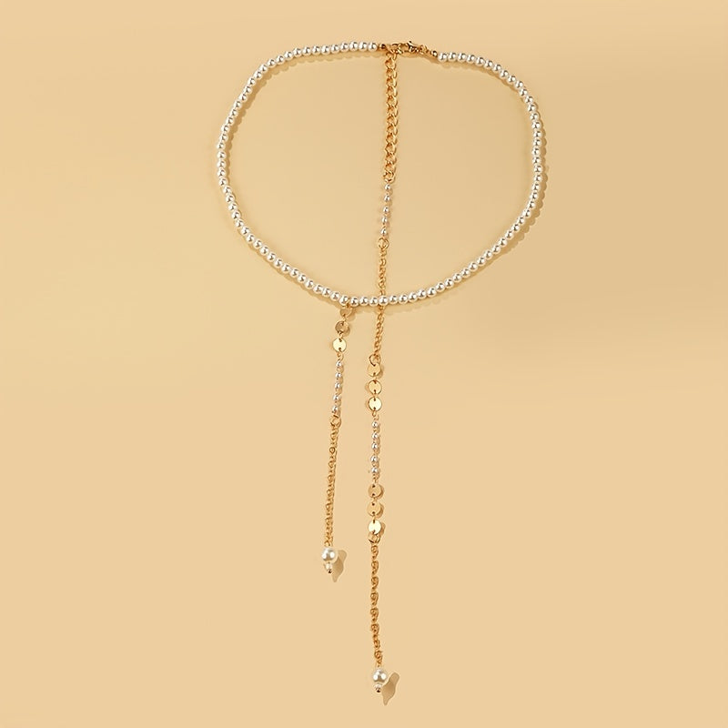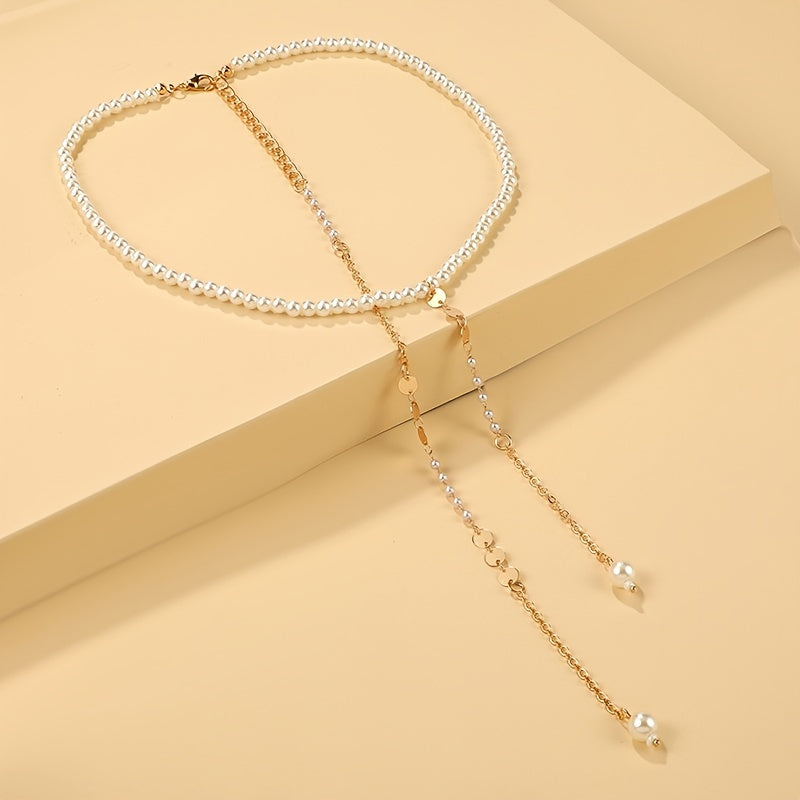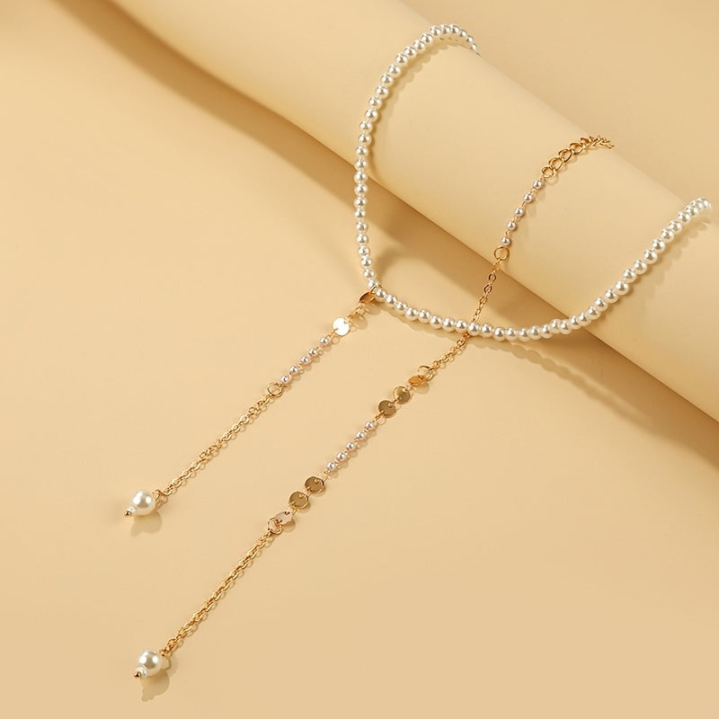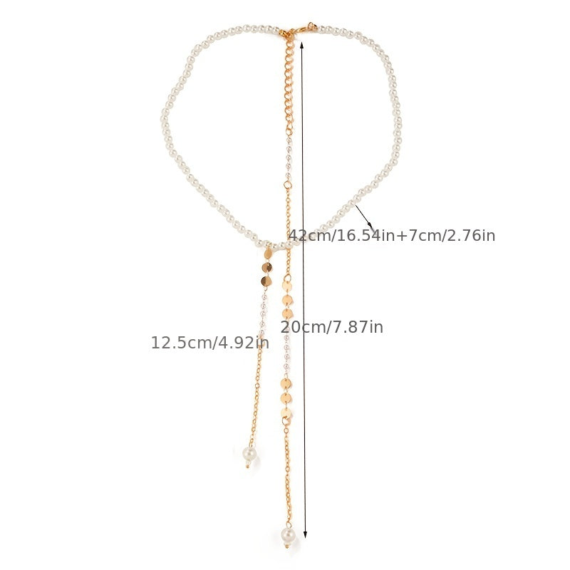 Elegant and versatile long pearl necklace that can also be worn as a back chain, perfect for formal occasions and everyday wear.