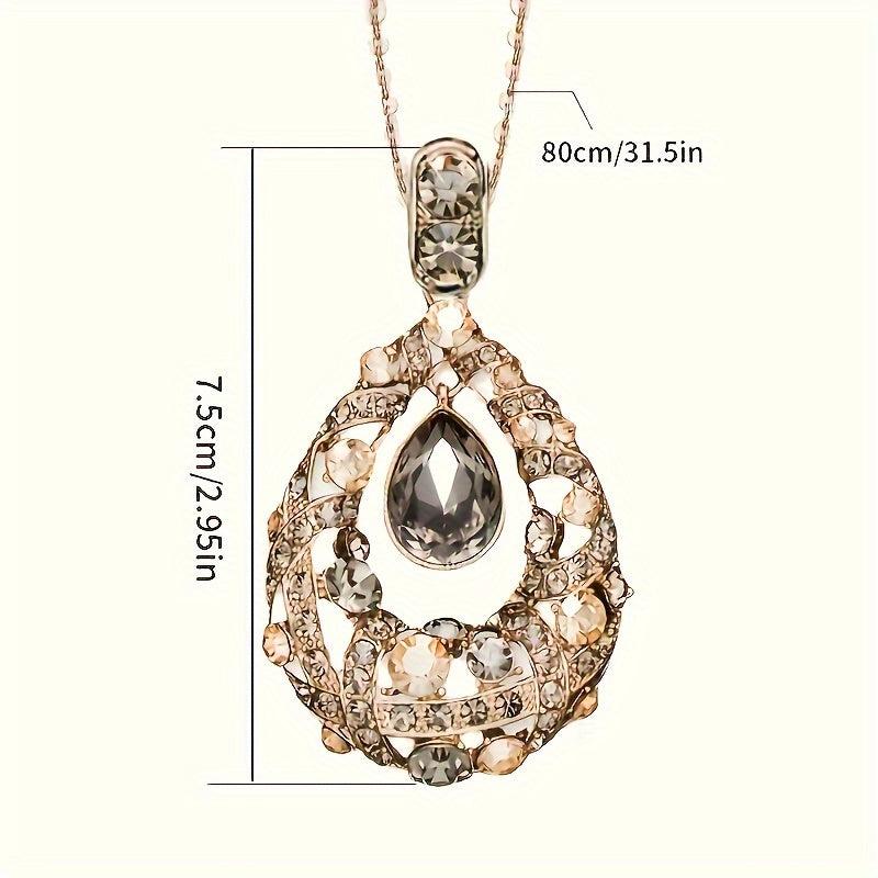 Elegant accessory to elevate your look. Features a long chain with water drop pendant.