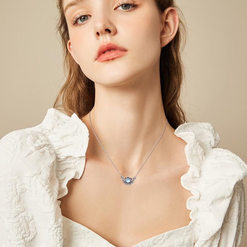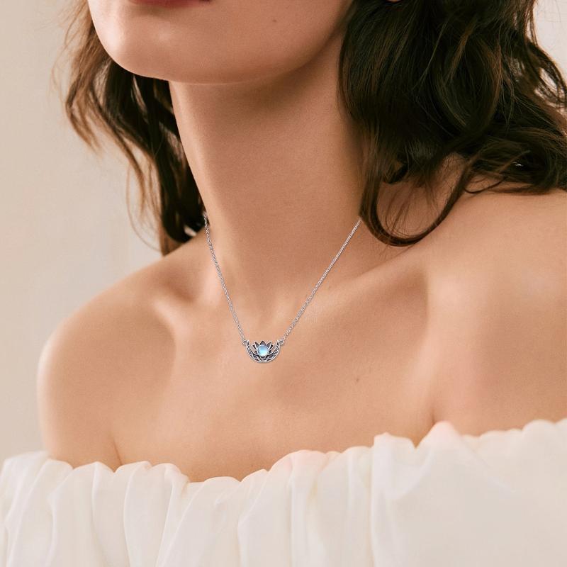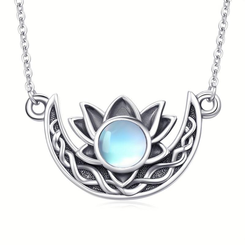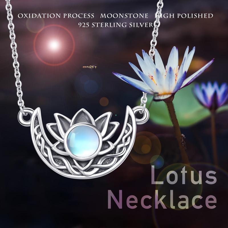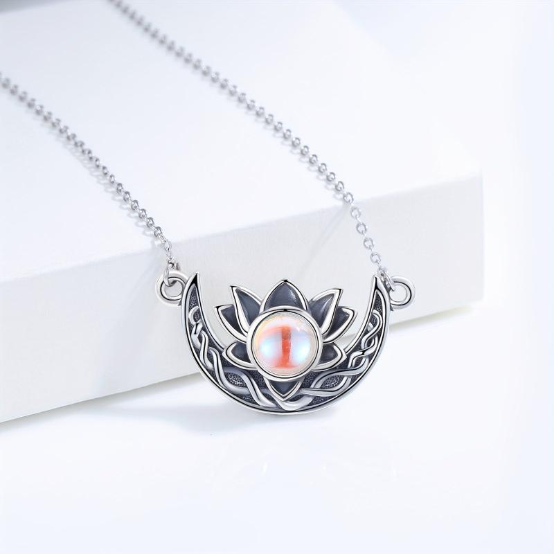 This Lotus Necklace features a Moonstone pendant on a 925 Sterling Silver chain. An elegant and meaningful gift for women and girls.