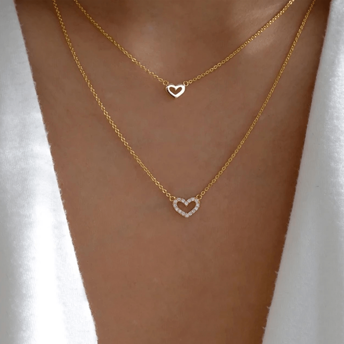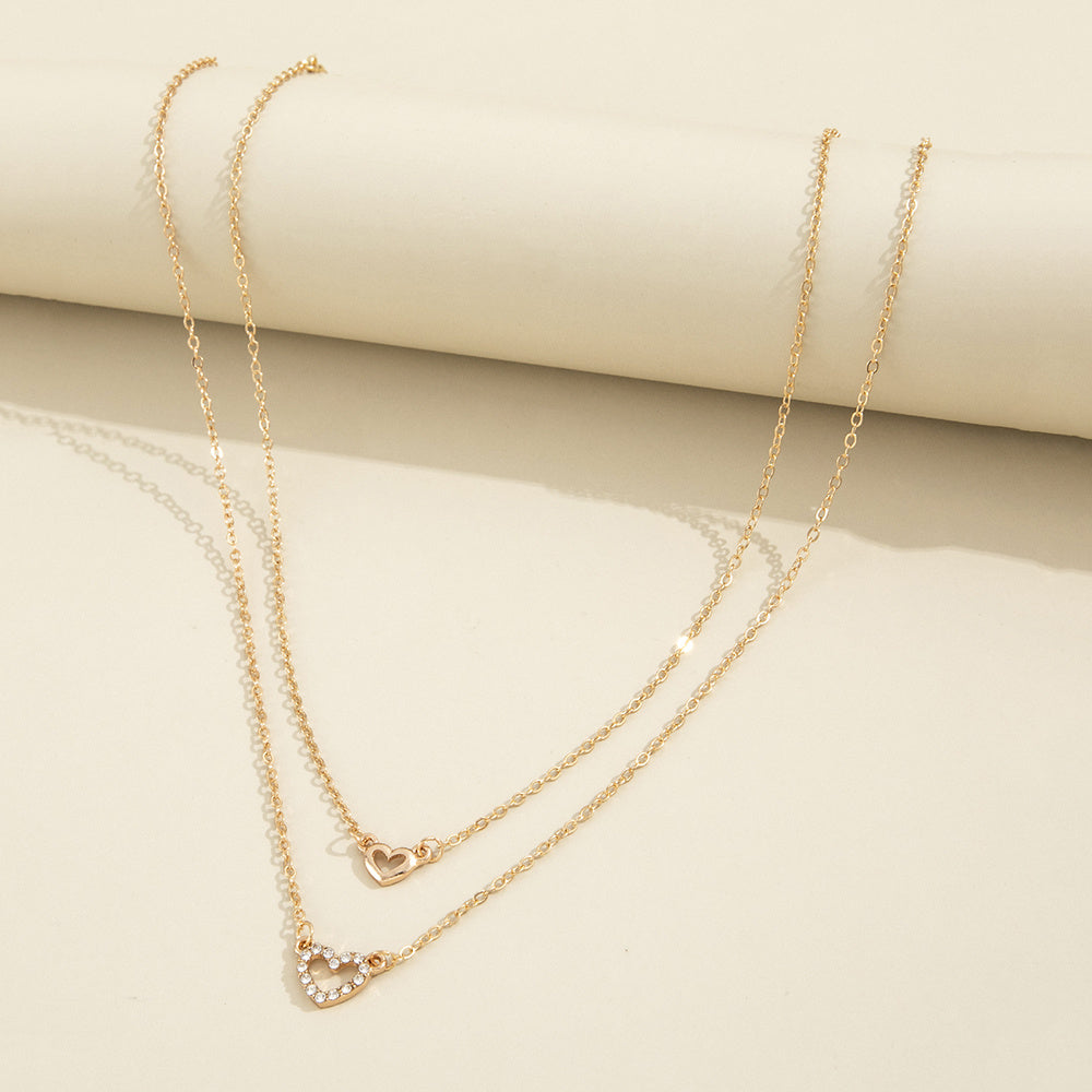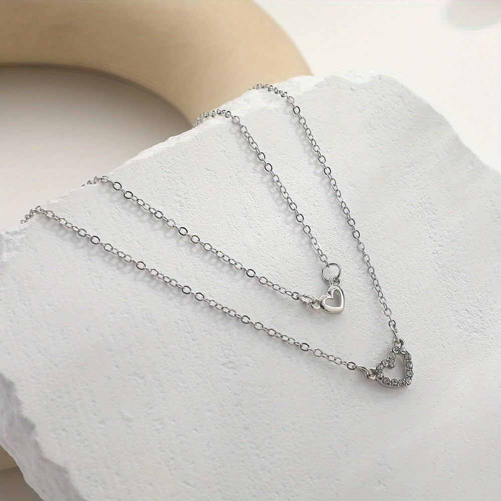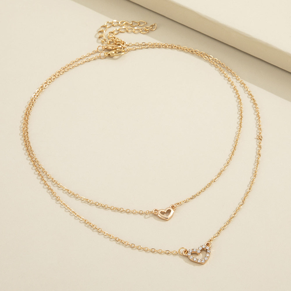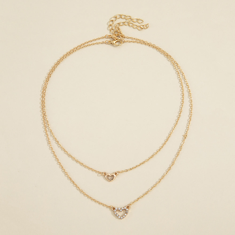 This double layer necklace features a trendy stacked design with faux diamond accents. Perfect for adding a touch of glamour to your outfits.