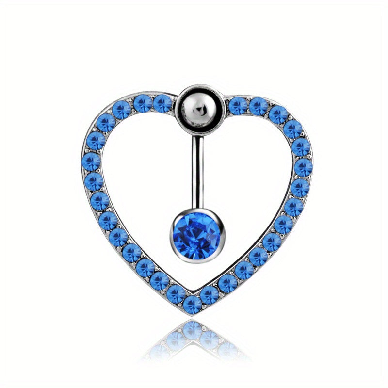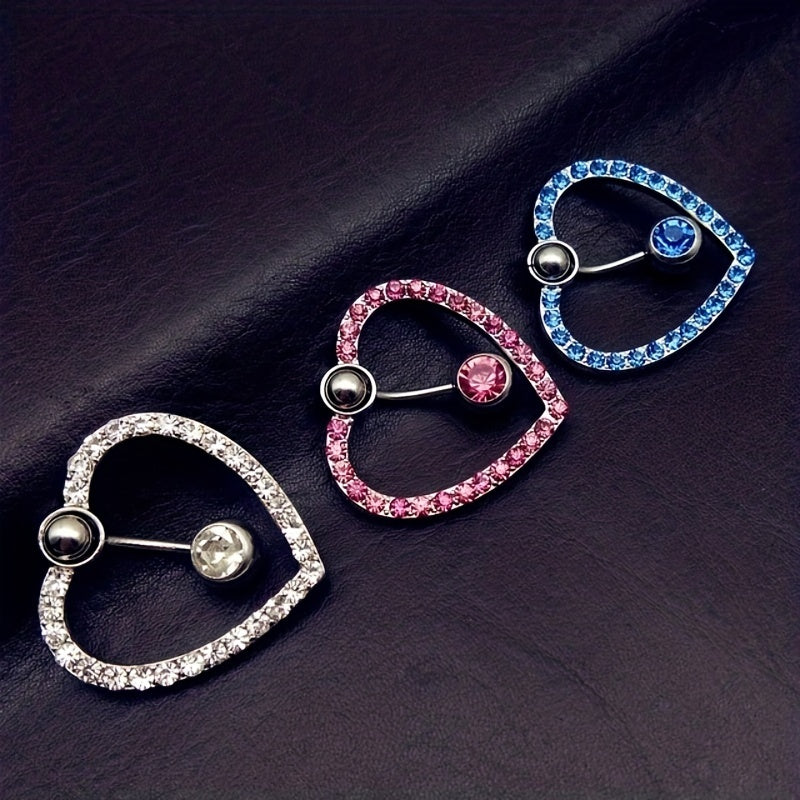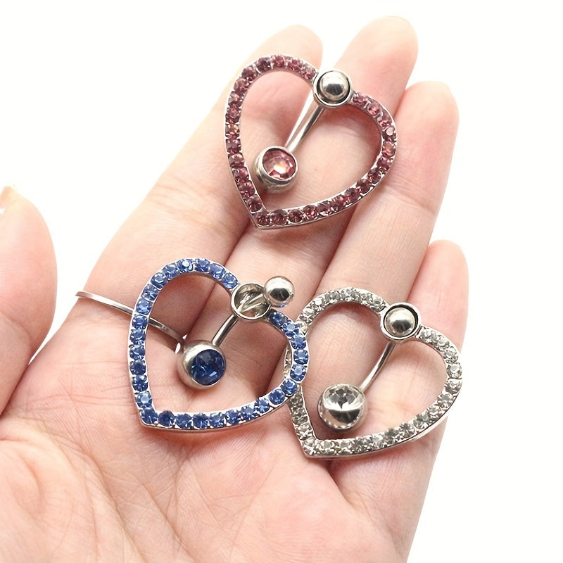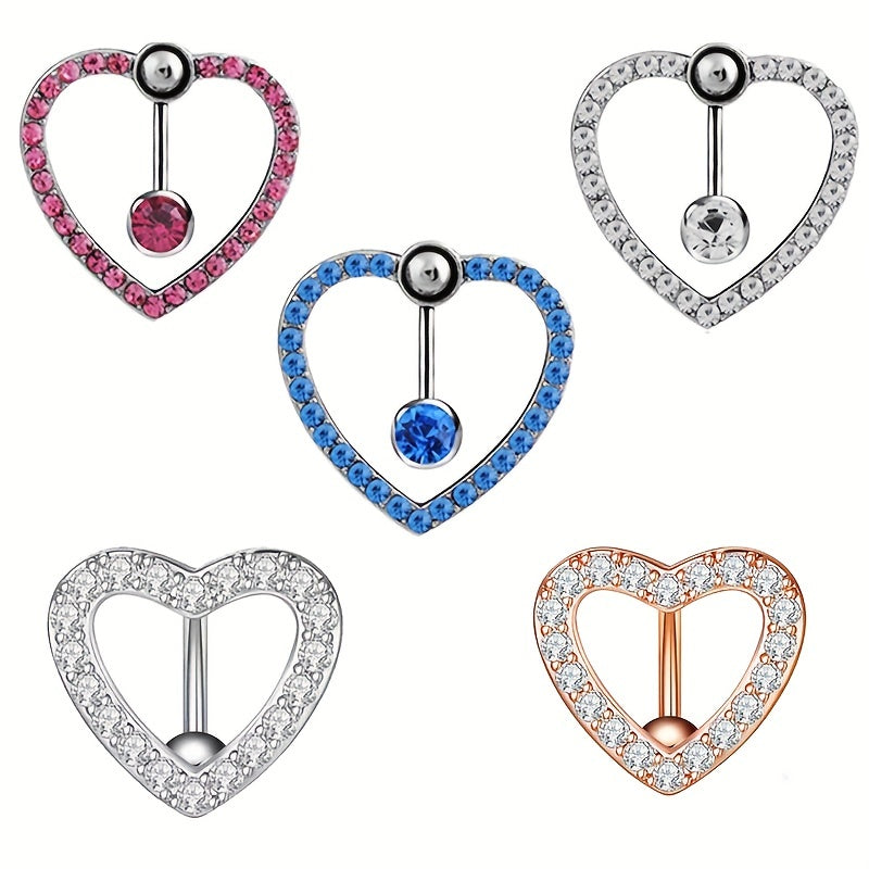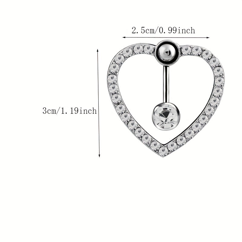 Love Heart Belly Button Ring with Zircon Inlaid Steel Navel Piercing