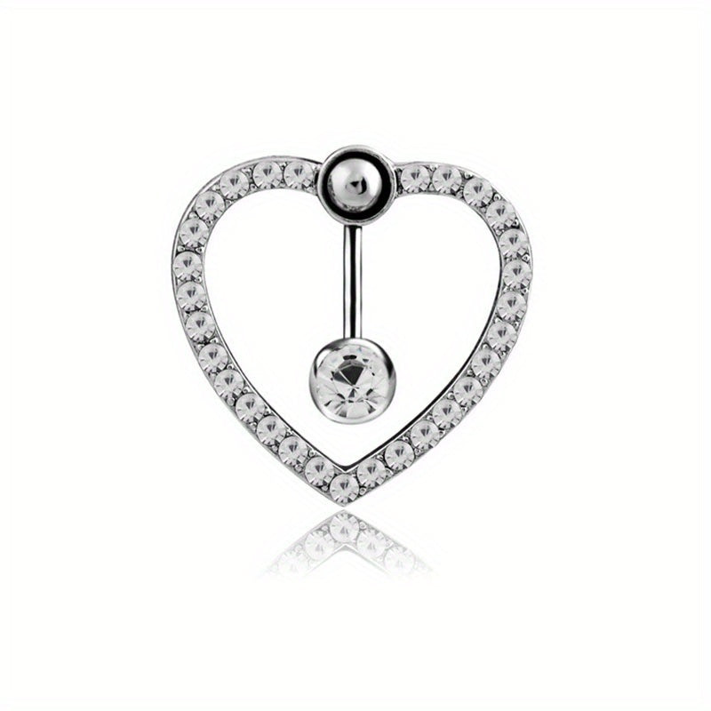 Upgrade your belly button jewelry with this stunning steel belly button ring featuring a hollow heart design and zircon inlay. Perfect for adding a touch of elegance to your look.