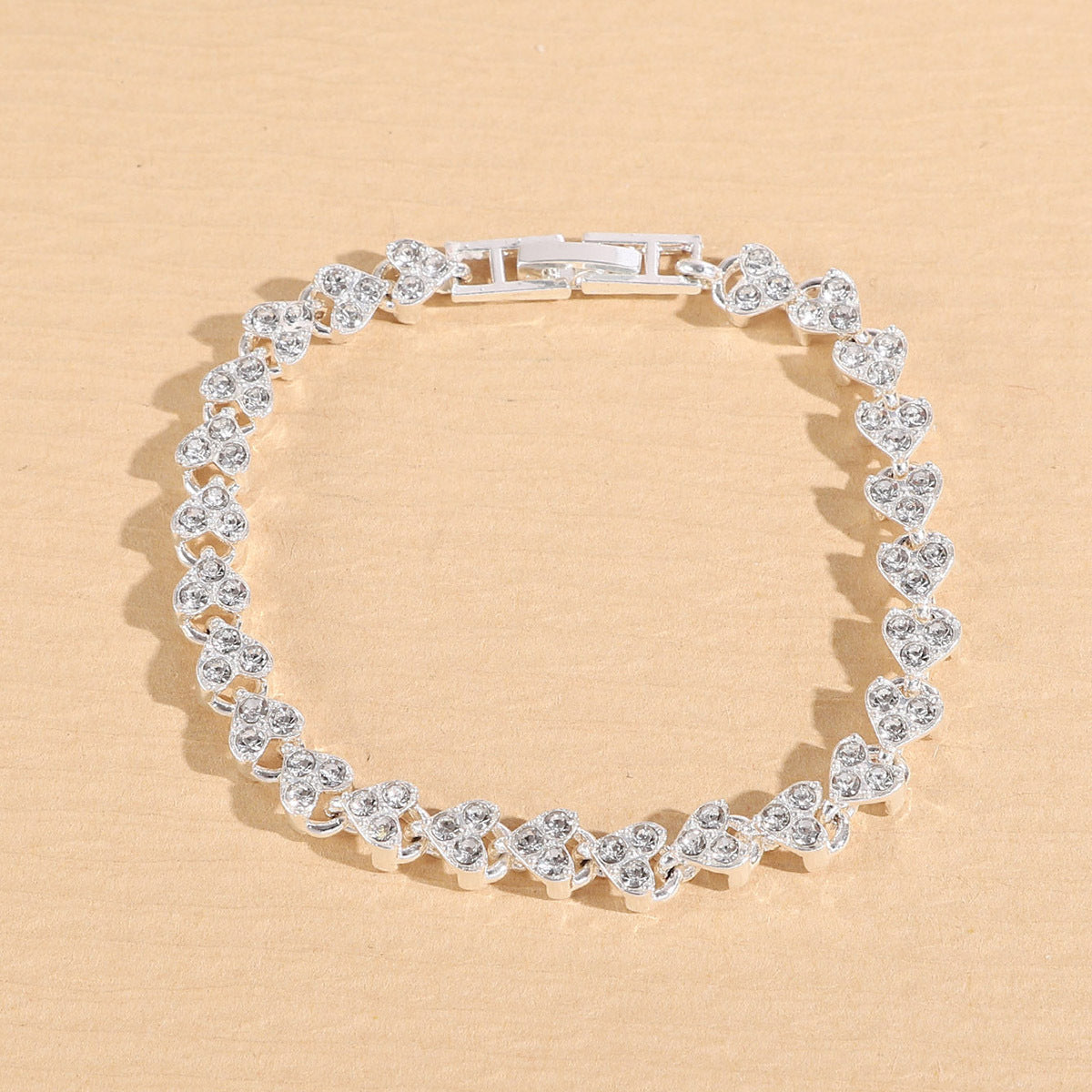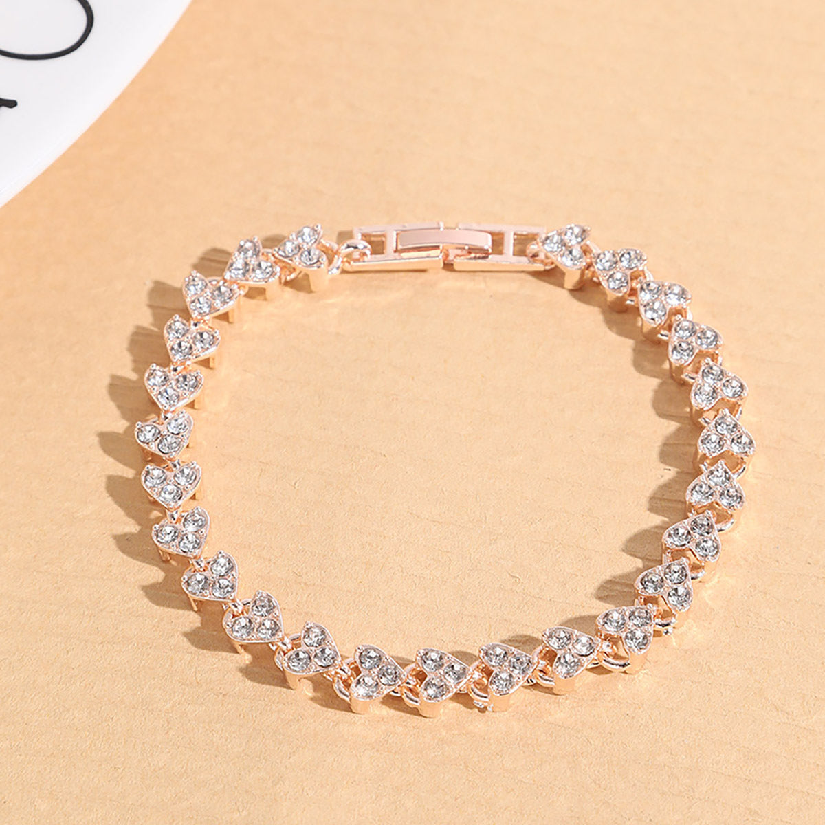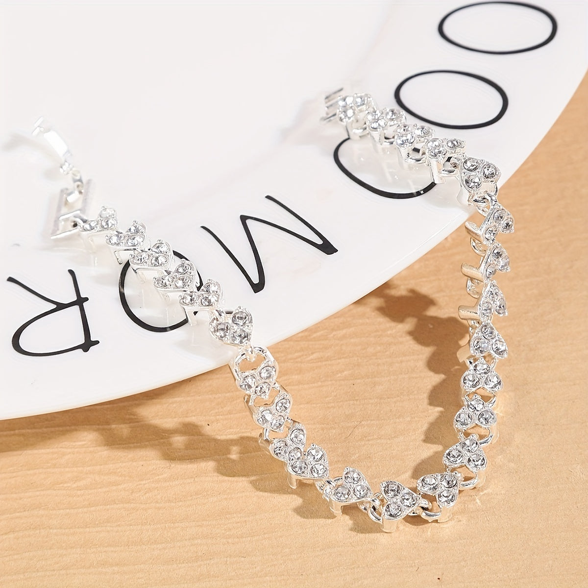 This stunning hand jewelry features a love heart chain bracelet with inlaid rhinestones, adding a touch of sparkle to your outfit.