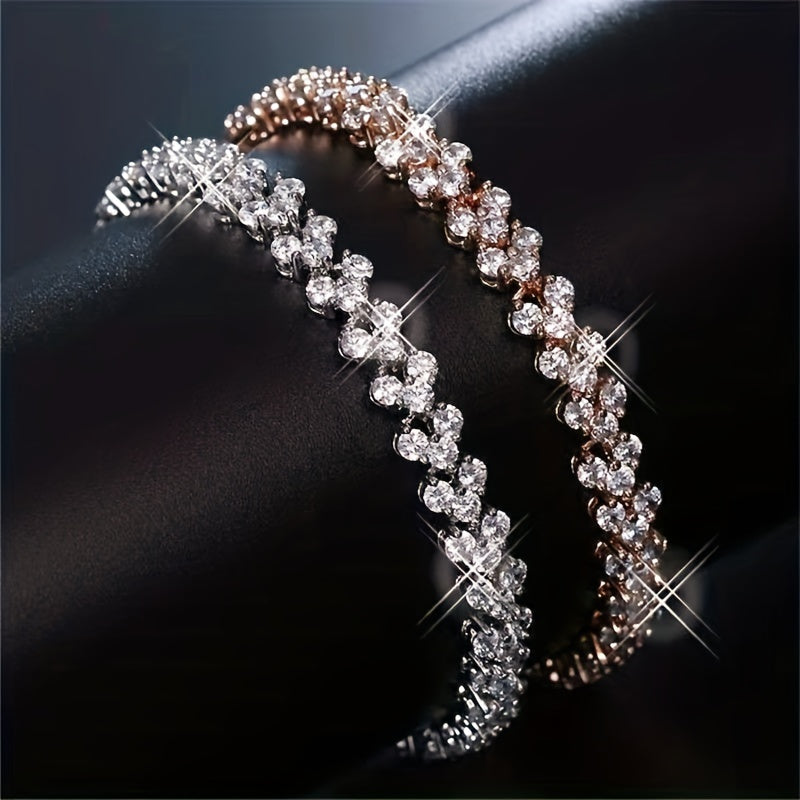 This bracelet is a blend of love and elegance, featuring heart-shaped crystals on a versatile alloy bangle. Perfect for any occasion.