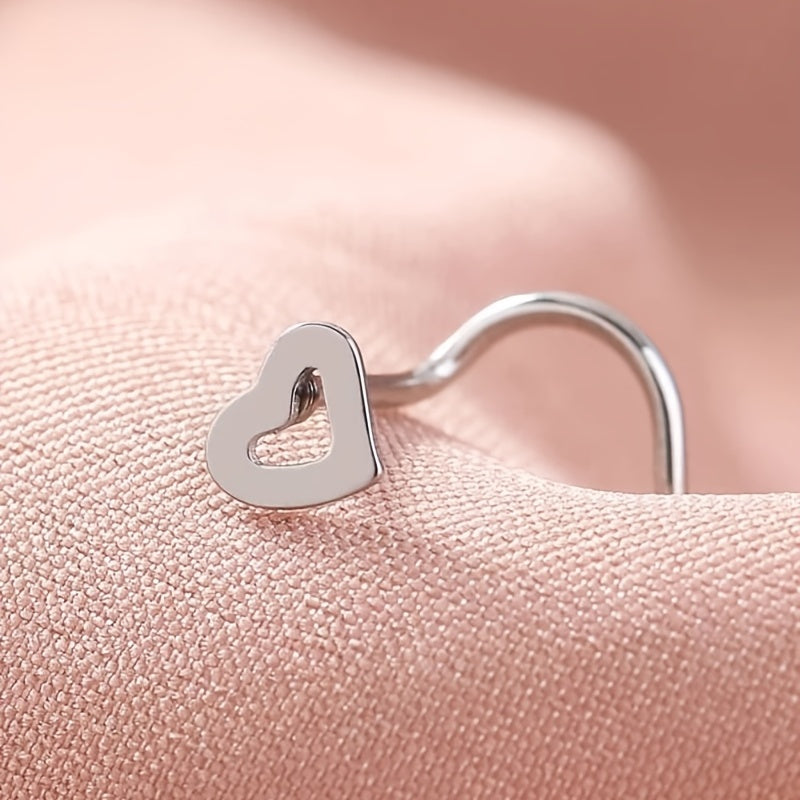 Enhance your style with this stainless steel S-shaped nose ring featuring a love hollowed-out design. Perfect for expressing your unique personality.