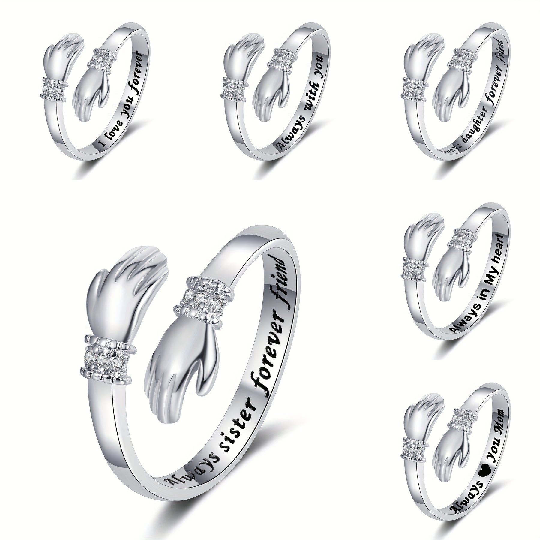 Express your love with this adjustable finger ring featuring the words 'Love Hug'. This makes a thoughtful gift for mothers on their birthday.