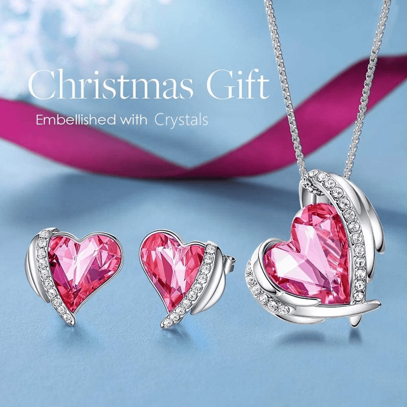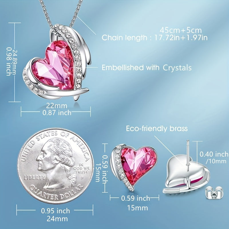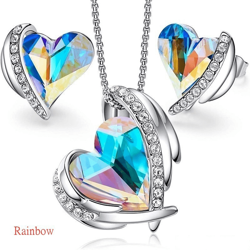 Add a touch of style with this multicolor Love Wings crystal necklace and earrings set. This elegant silver plated accessory is perfect for women and girls who love to make a statement.