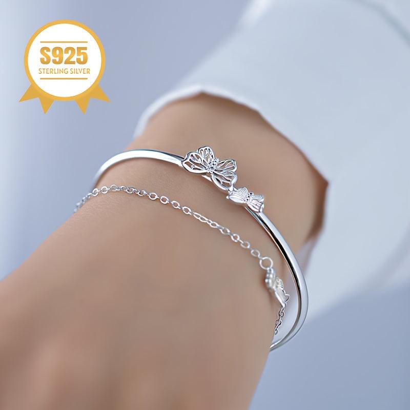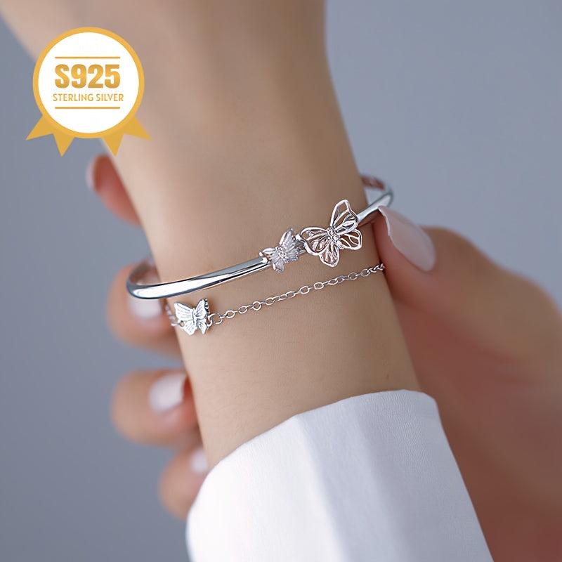 This butterfly bracelet is perfect for adding a touch of elegance to any outfit. It features a double layer design with a high-end feel, making it a great gift for Valentine's Day.
