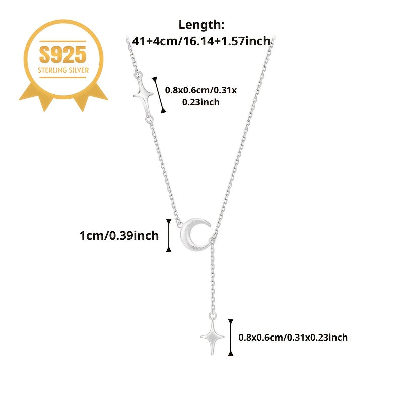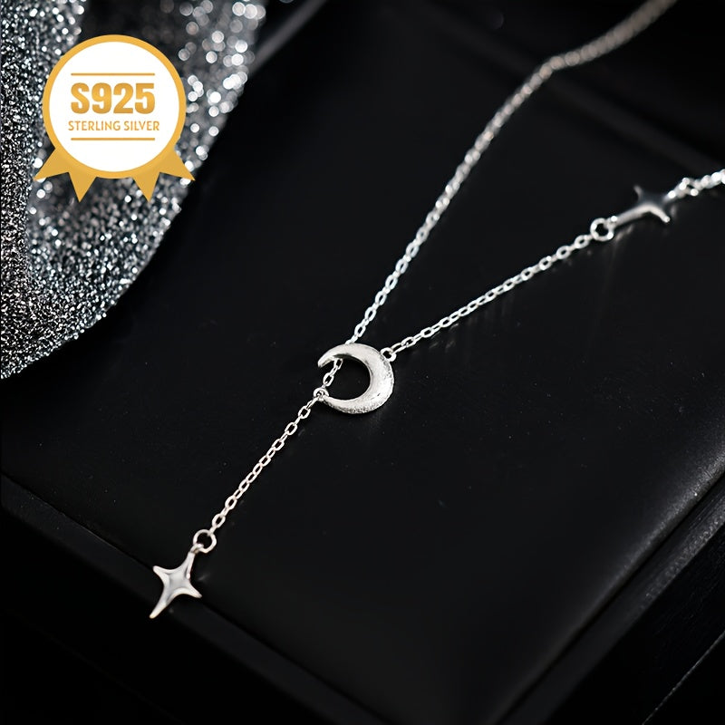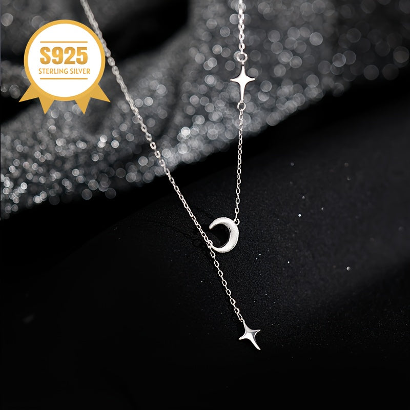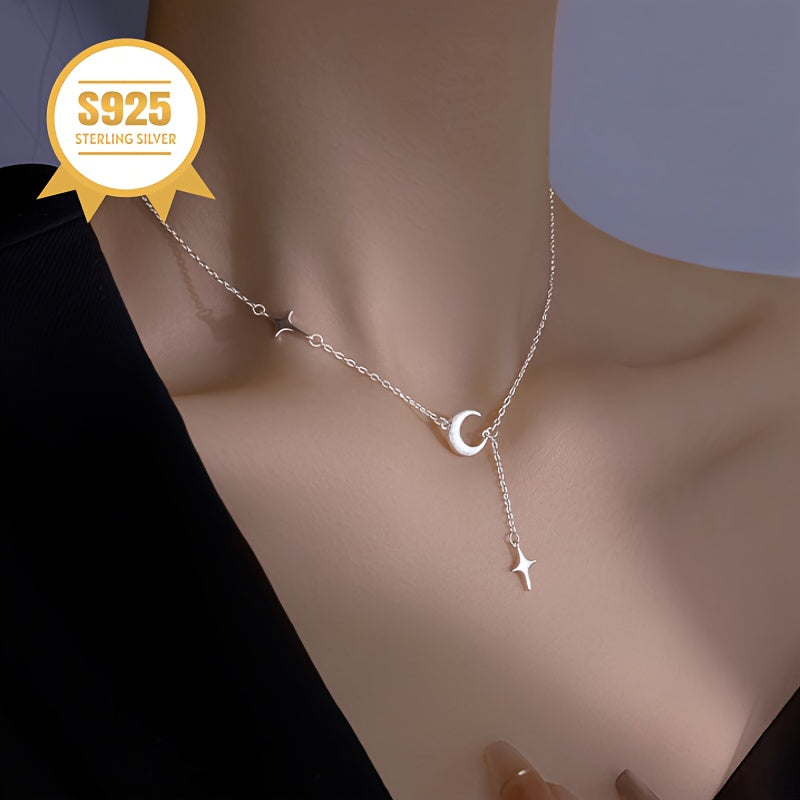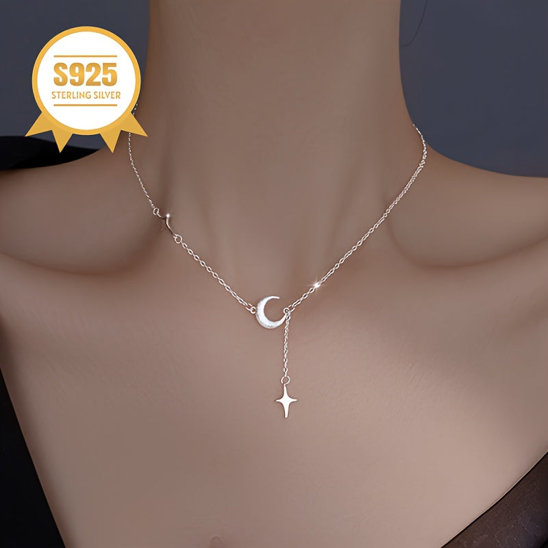 Minimalist, unique necklace perfect for Valentine's or Mother's Day, featuring a star and moon tassel pendant. Low allergy design for women.