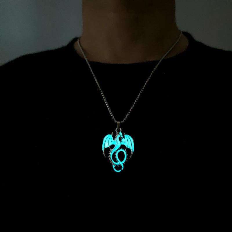 This necklace features a dragon pendant that glows in the dark, perfect for a punk gothic look. Made of stainless steel, it's durable and stylish.