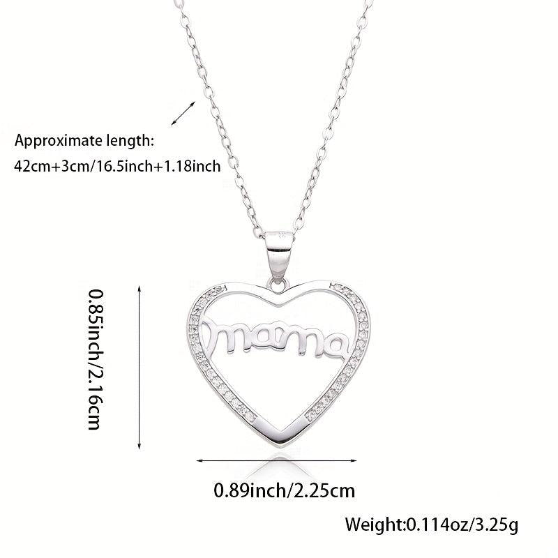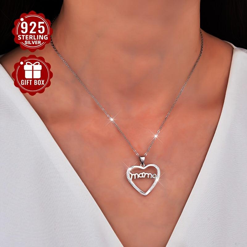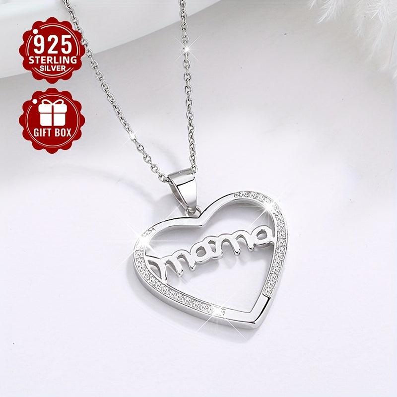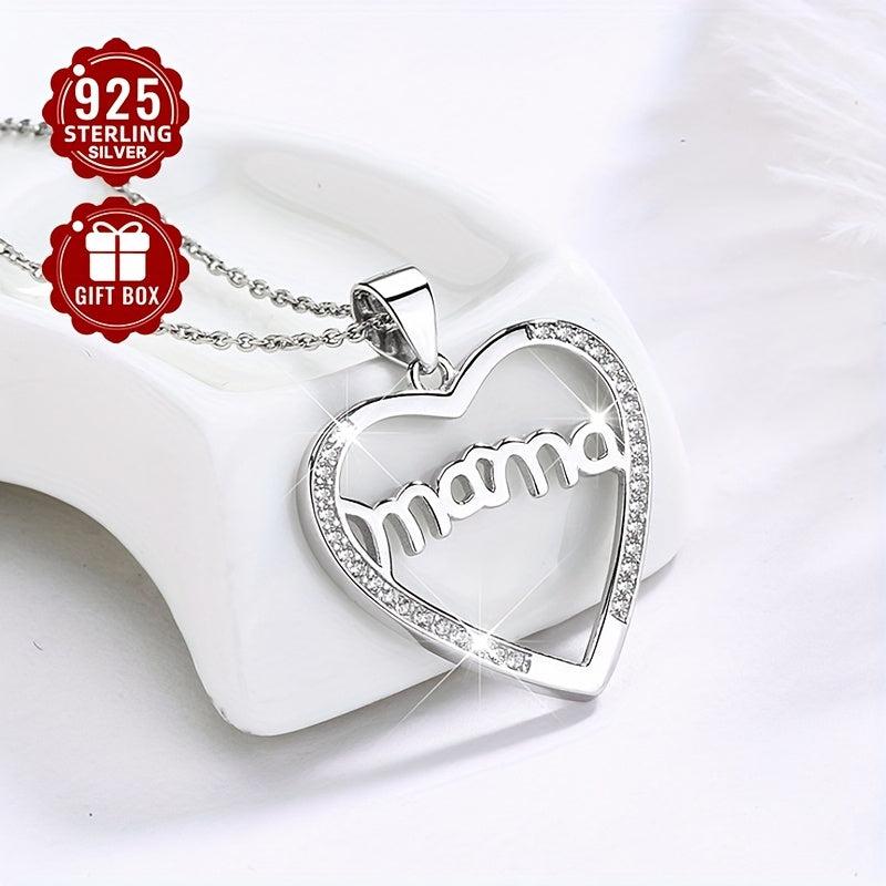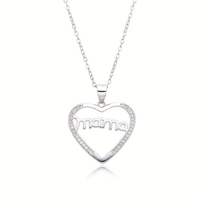 Show your love for mom with this beautiful pendant necklace featuring the word 'Mama' and a heart-shaped synthetic zirconia stone in S925 silver.