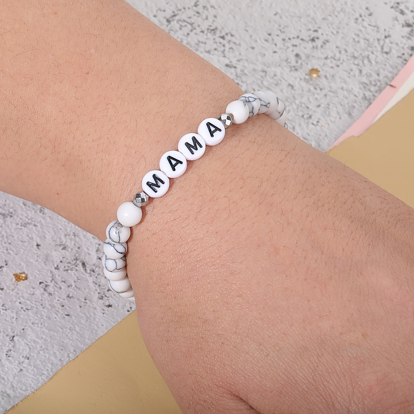 This stylish bracelet is a perfect gift for mothers. The marbling design and smooth beads enhance its beauty.