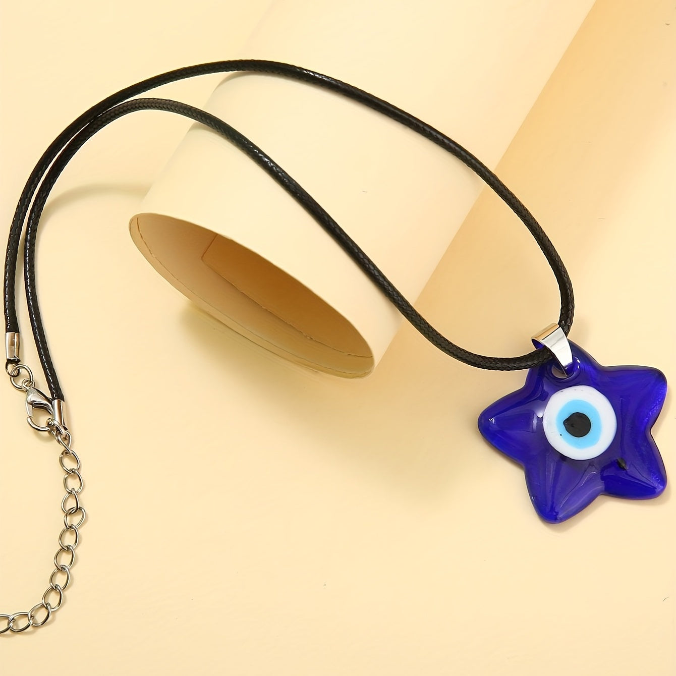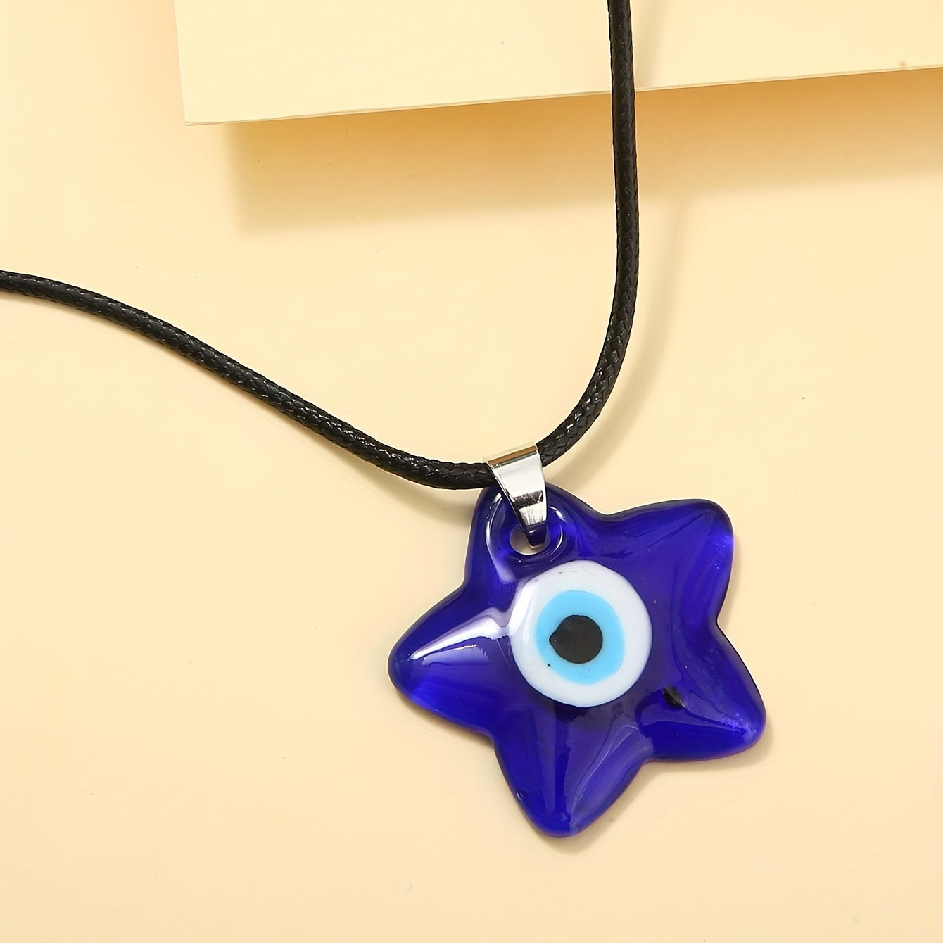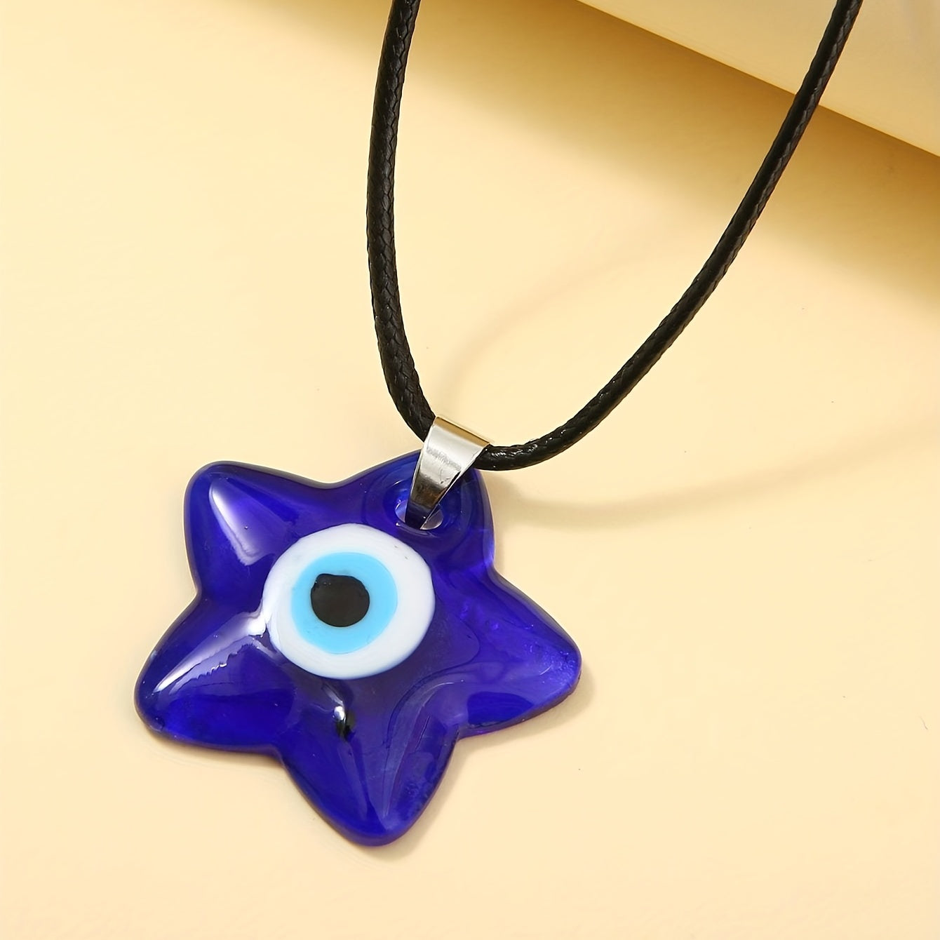 Stay protected with this royal evil eye pendant necklace. The eye-catching star shape and glass design add a bohemian touch. A charming accessory for good luck and protection.
