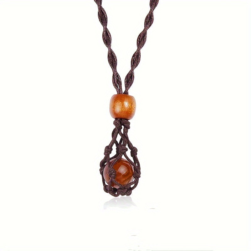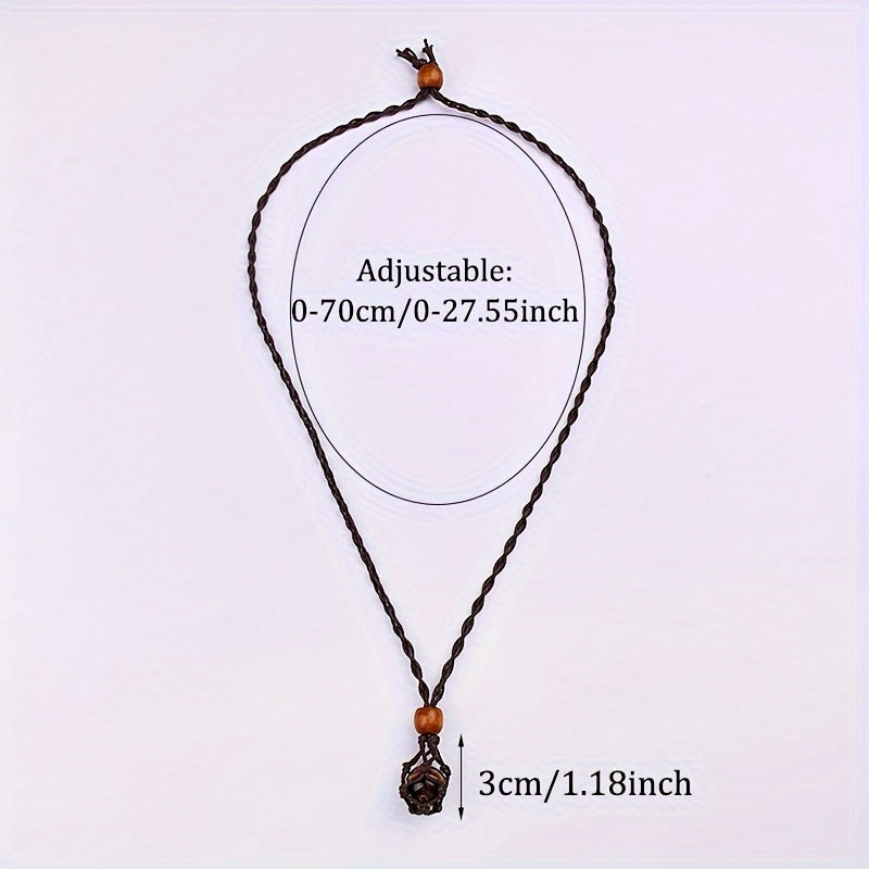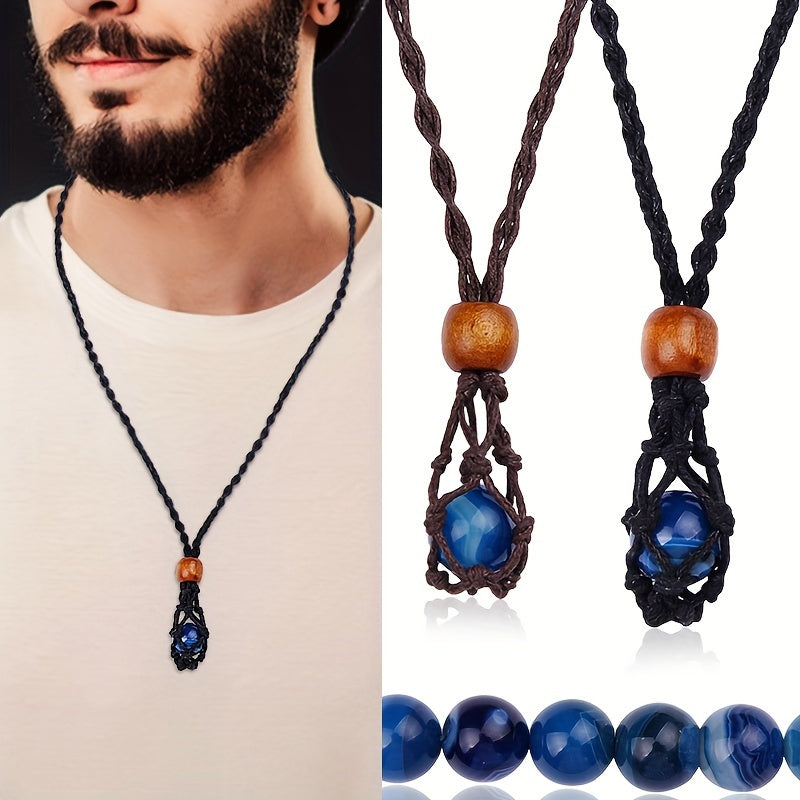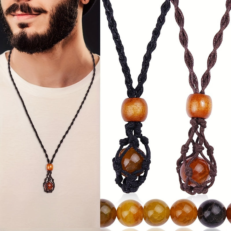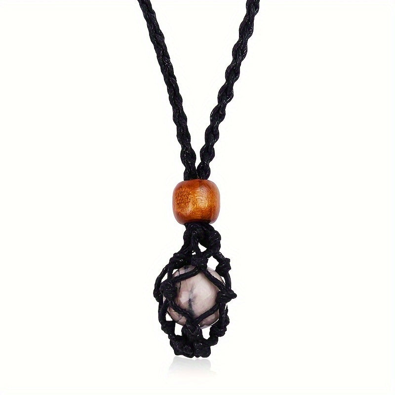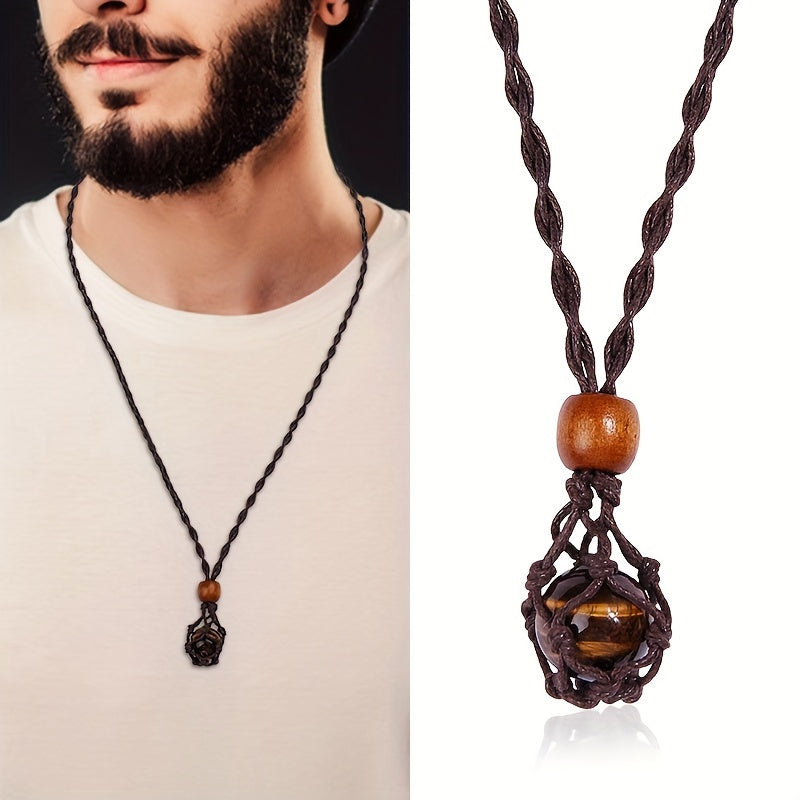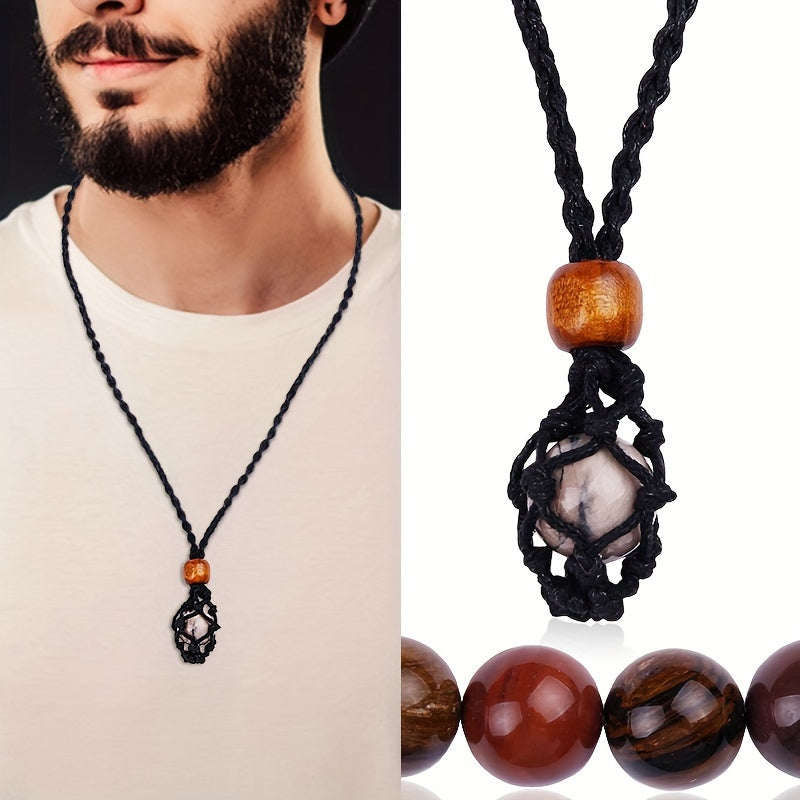 Men's Hand Woven Net Stone Pendant Necklace, Non-Magnetic Stone Pendant