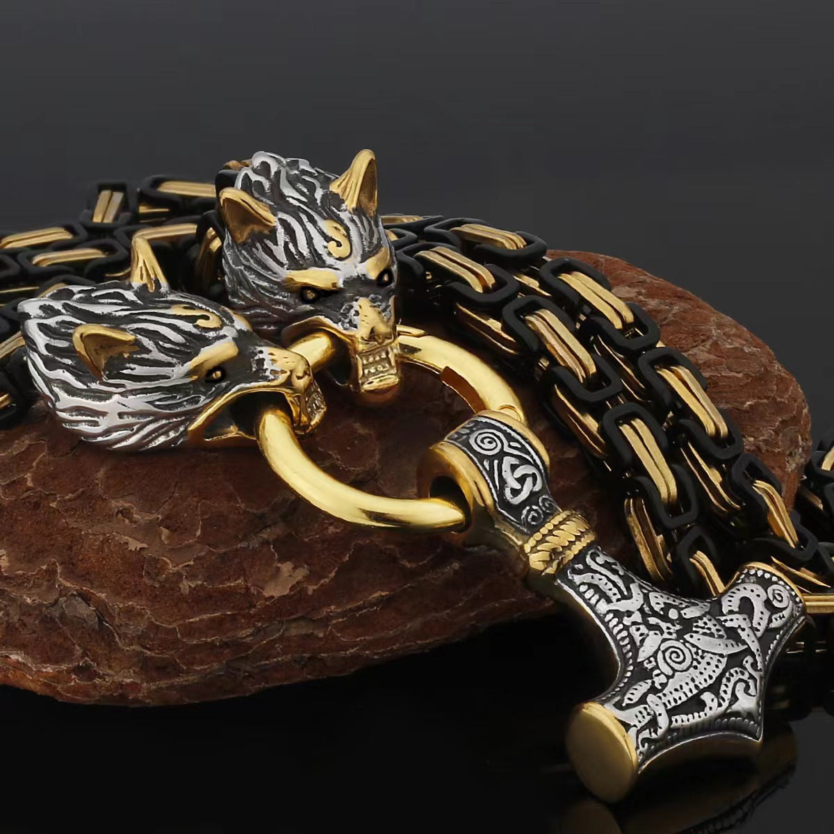 Embrace the retro punk rock vibe with this Emperor Hammer Amulet Pendant necklace featuring a wolf head design. Made of high-quality 316L stainless steel, this accessory exudes a bold and edgy look, perfect for the modern man.