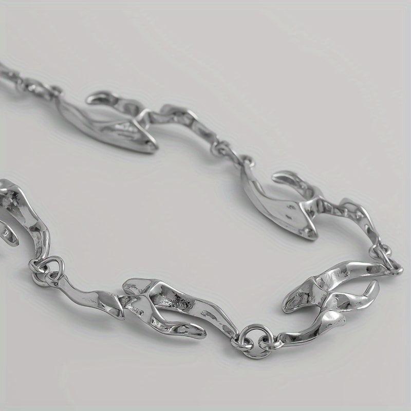This collarbone chain necklace is made of stainless steel with an irregular metal design, perfect for your boyfriend. It is uncoated titanium steel and non-magnetic, making it a great gift.