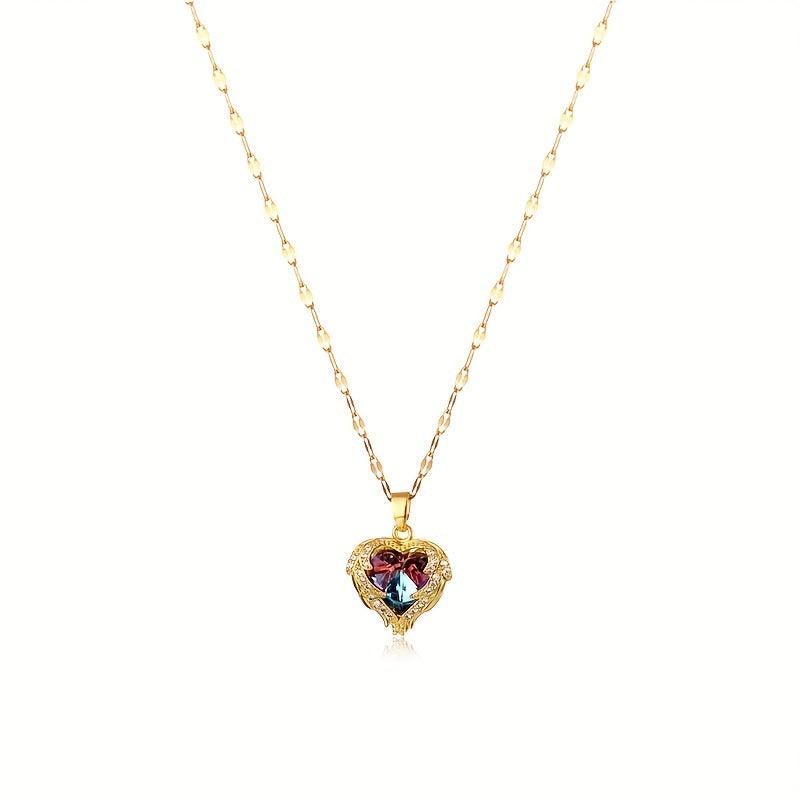Add a touch of elegance with this classic heart-shaped pendant necklace featuring faux diamond accents. Crafted from durable stainless steel, this necklace is the perfect accessory for any outfit.