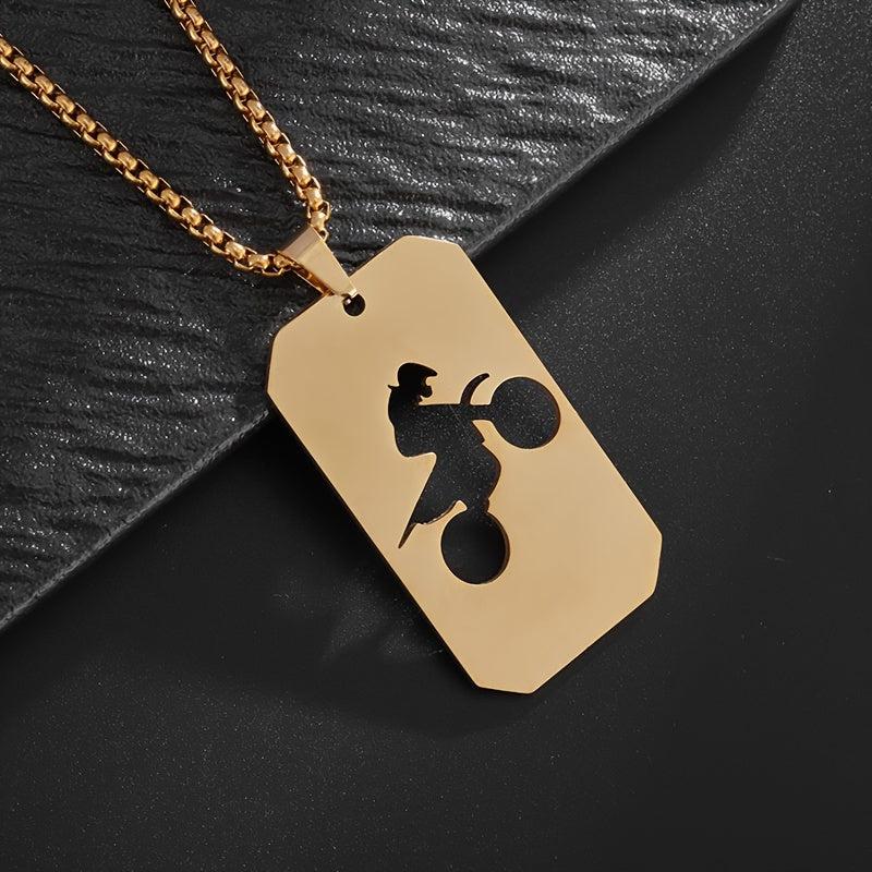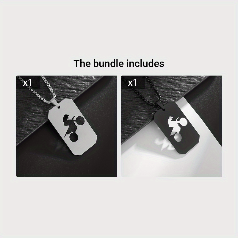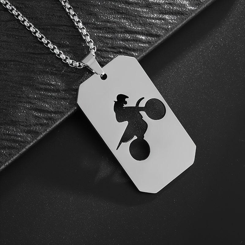 Stylish motorcycle pendant necklace for men made of durable stainless steel.