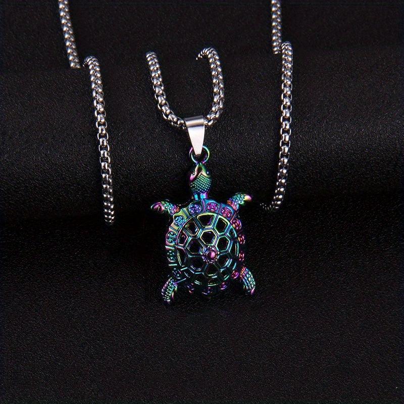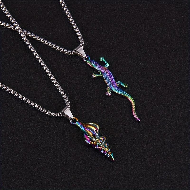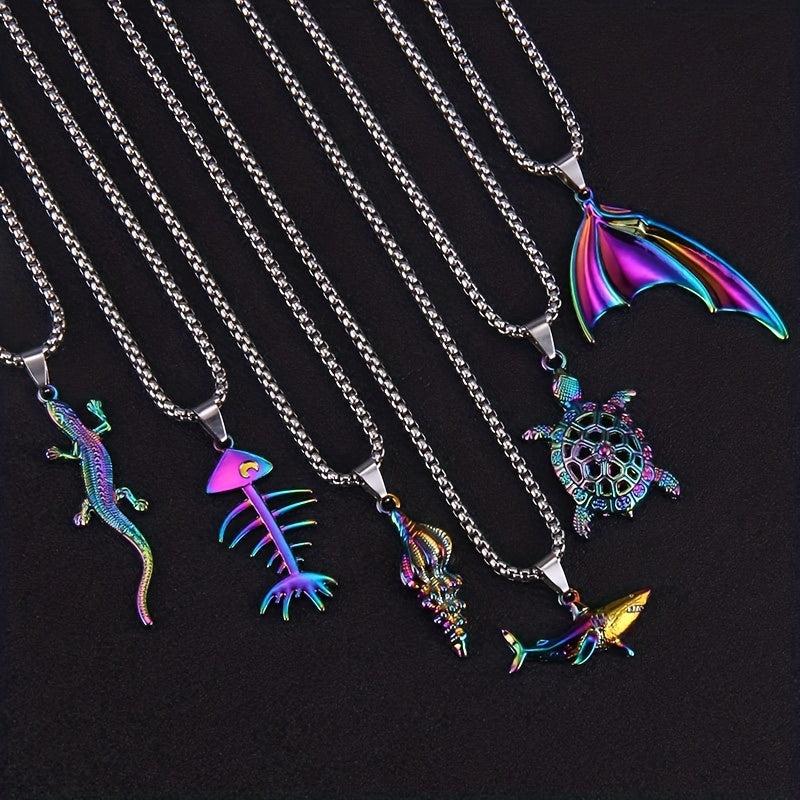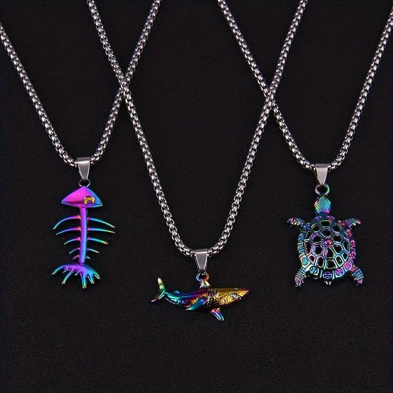 This necklace features a colorful design with turtle, shark, lizard, and conch pendants, making it a unique accessory for ocean lovers.