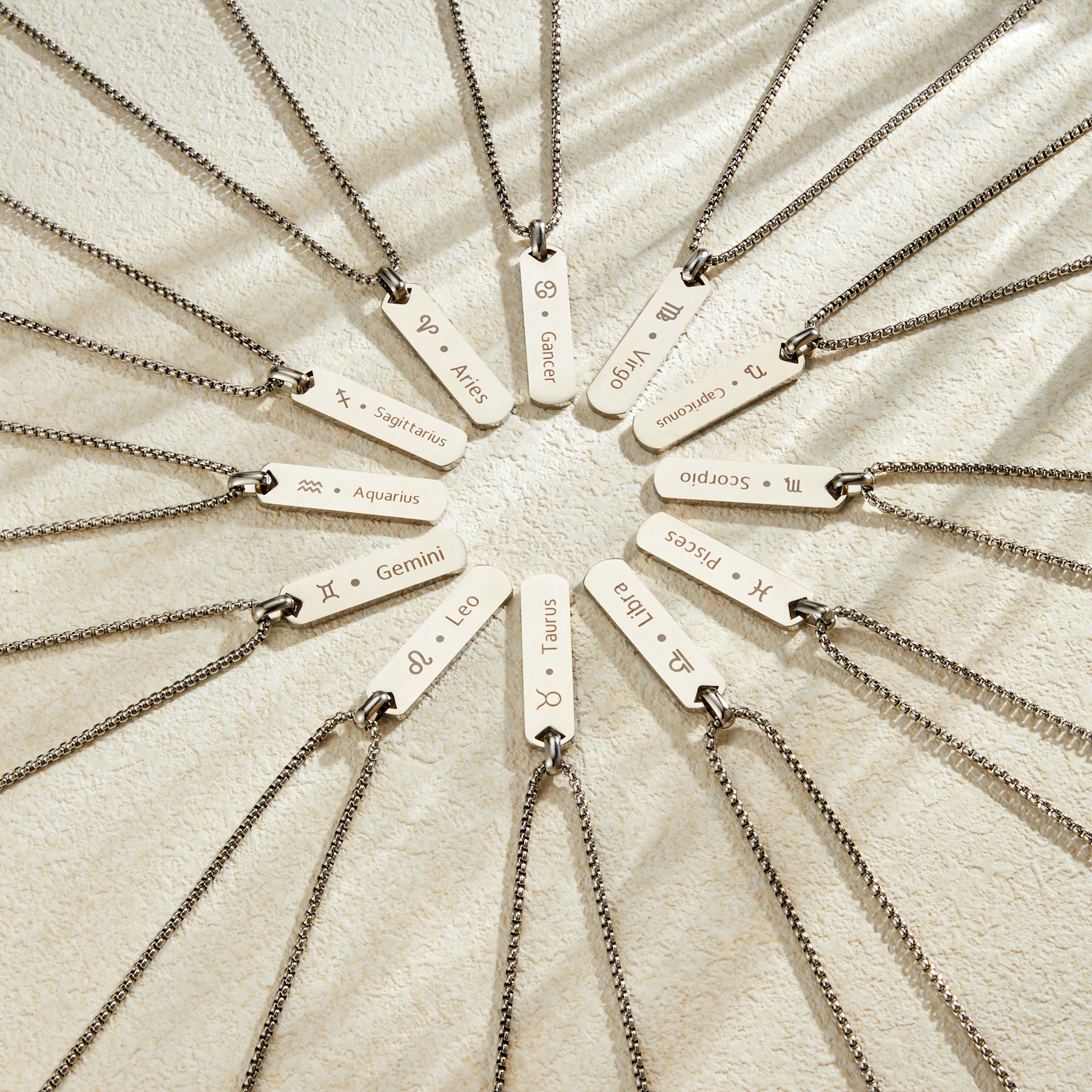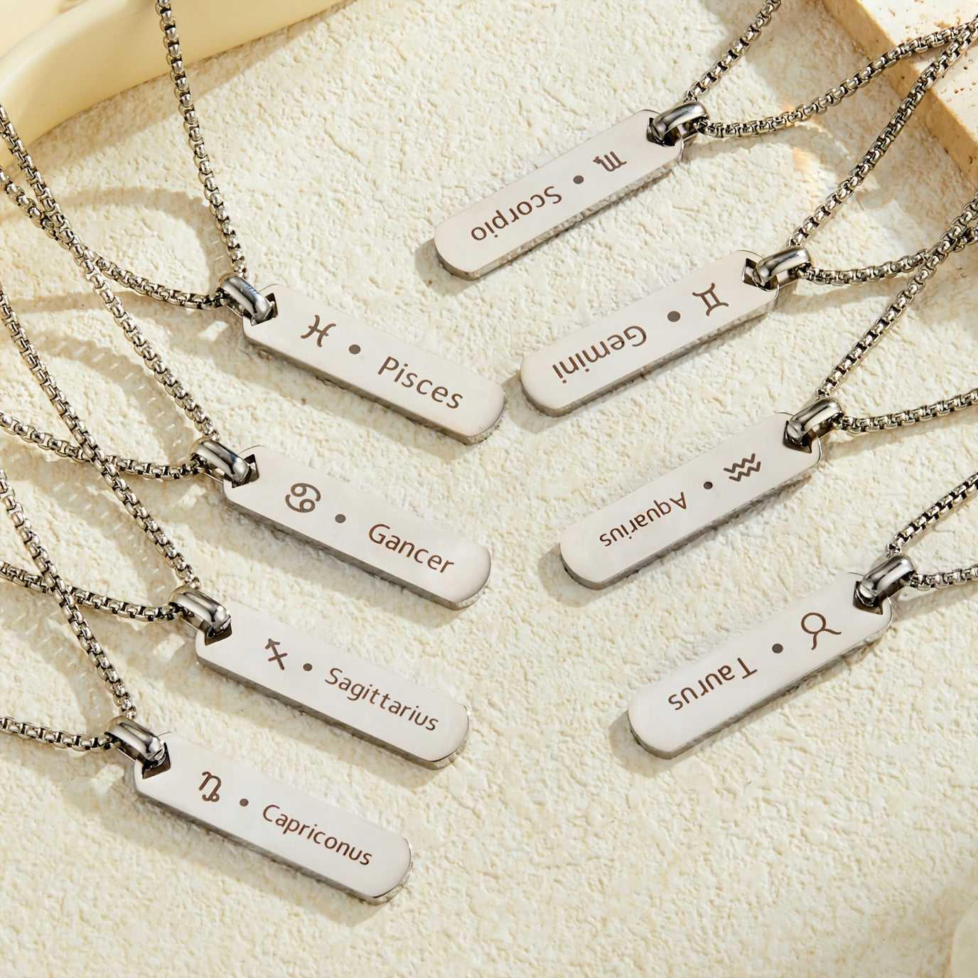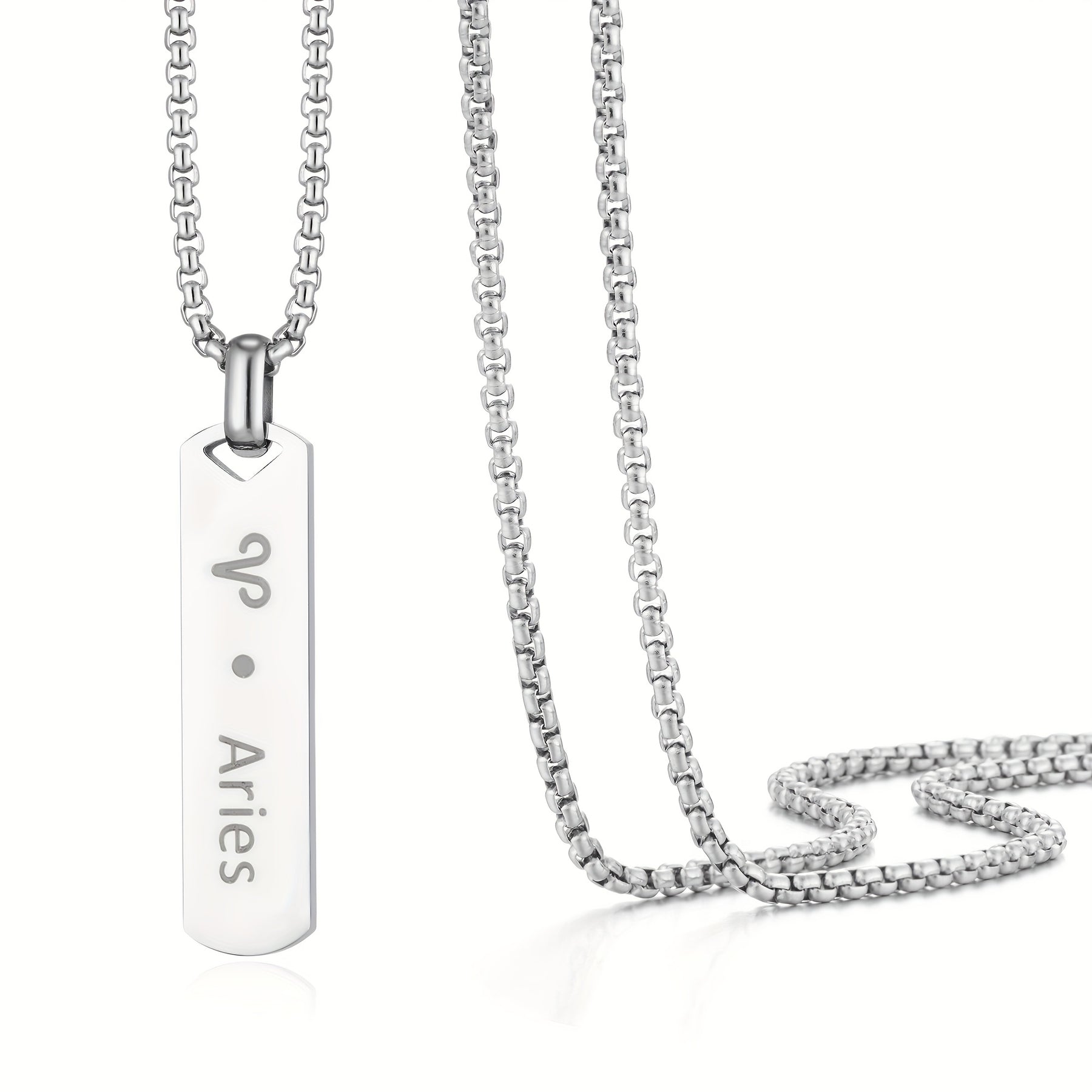 This stylish pendant necklace features a stainless steel zodiac sign design for men.