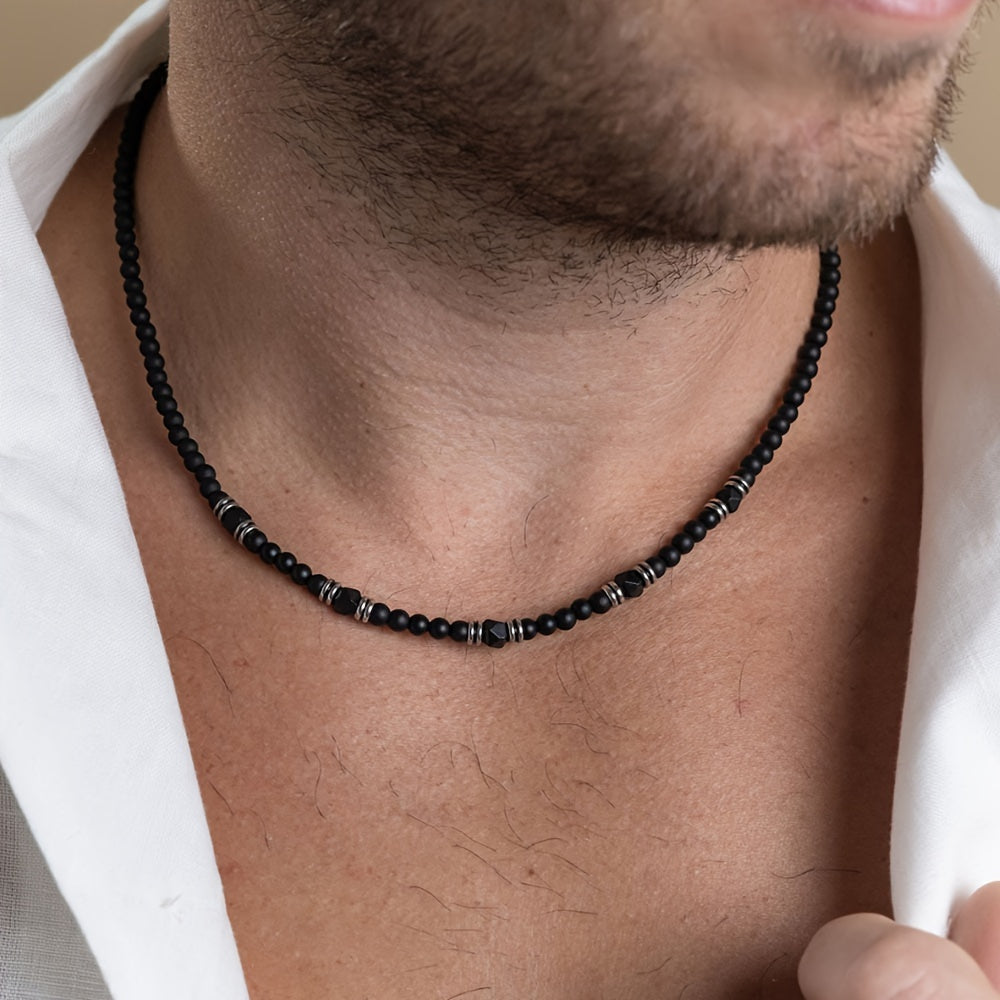 Add a touch of minimalist punk style to your look with this sleek stone beaded necklace.