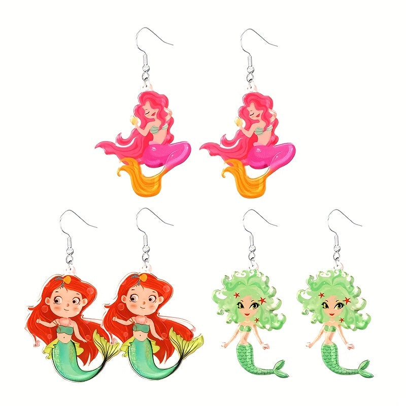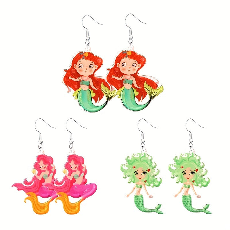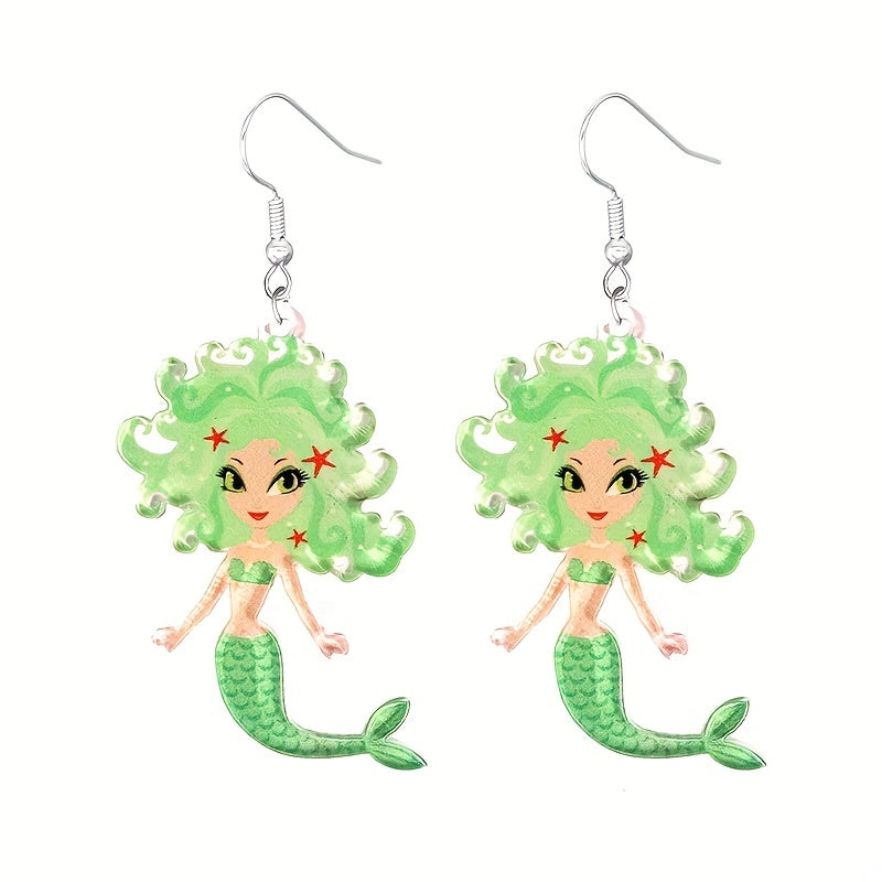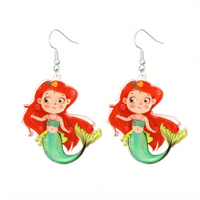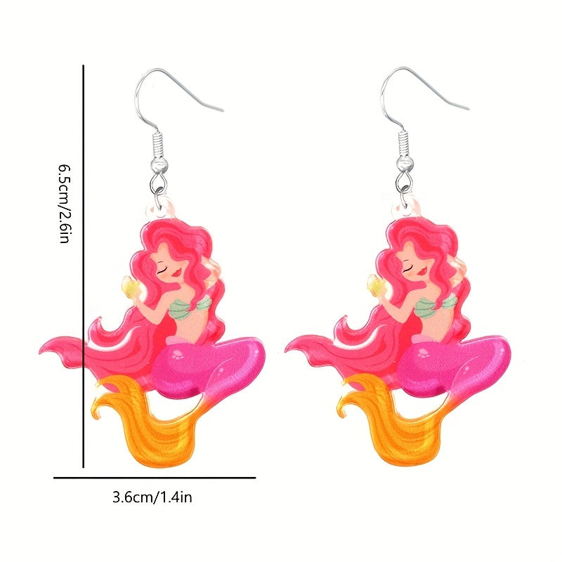 These charming mermaid dangle earrings are made of acrylic material, featuring a delicate and adorable design. They make a perfect gift for females who appreciate unique jewelry styles.