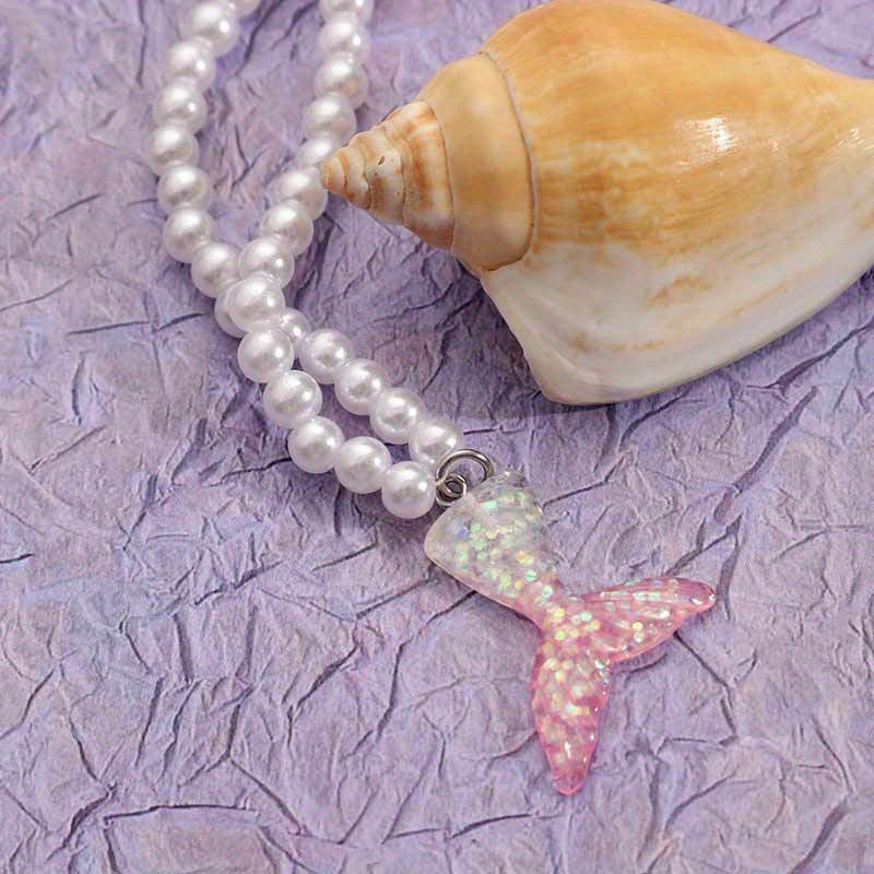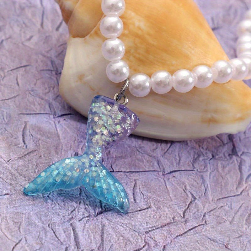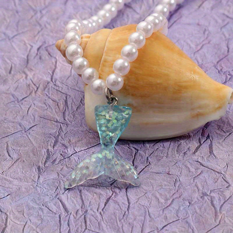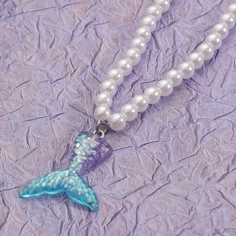 Elegant and enchanting necklace featuring a mermaid fishtail design with faux pearls and glitter accents. Perfect for women and girls who love a touch of magic in their accessories.