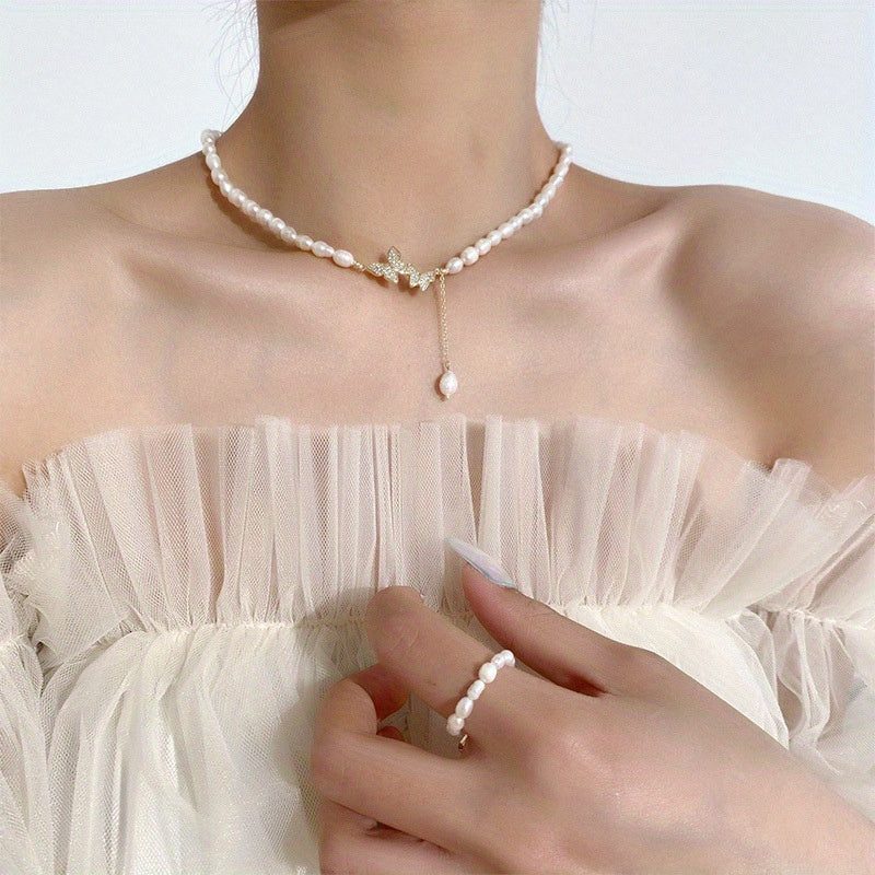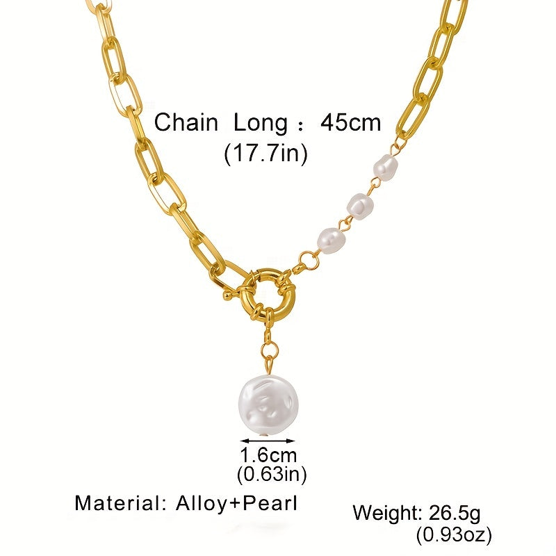 Elegant pearl necklace with metal pendant, perfect for adding a touch of sophistication to any outfit.