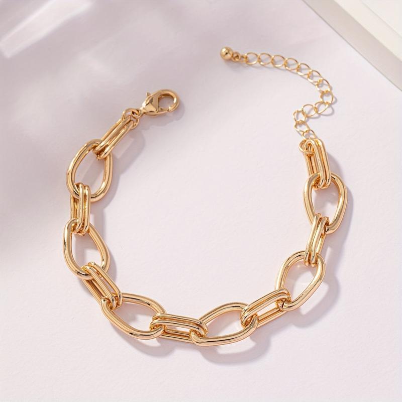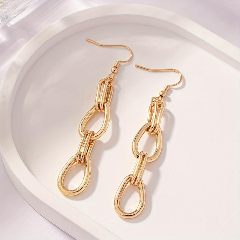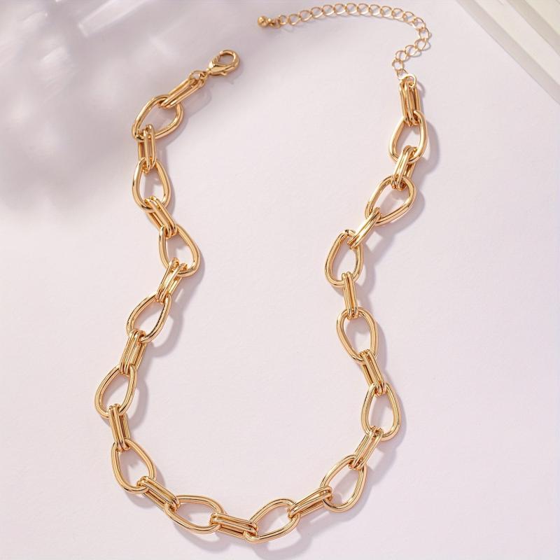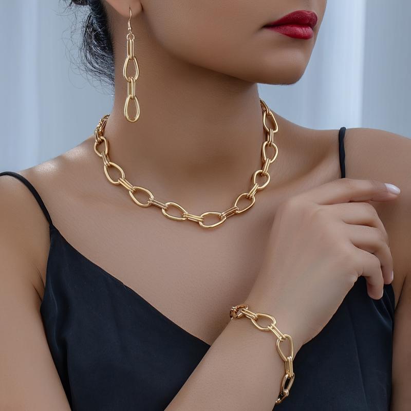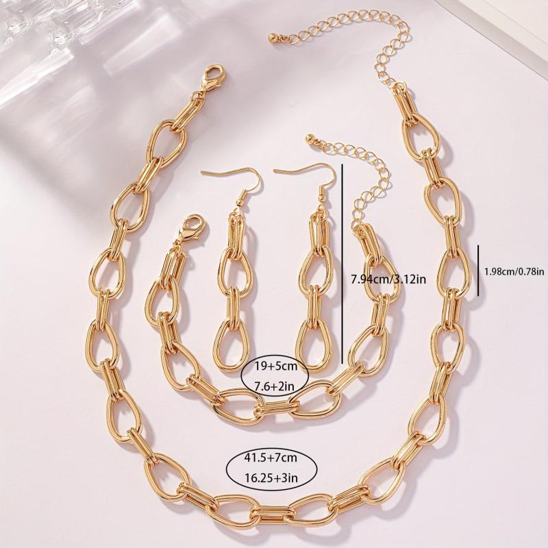 Rock your vacation style with this edgy metal punk jewelry set featuring irregular shape chain earrings, bracelet, and necklace.