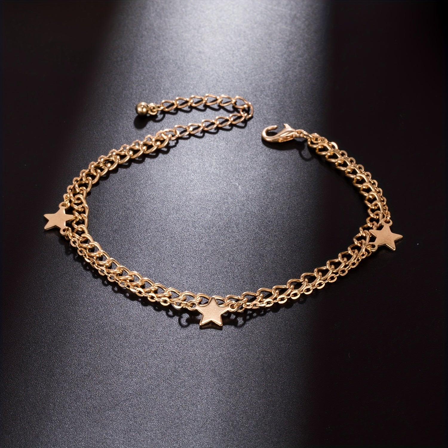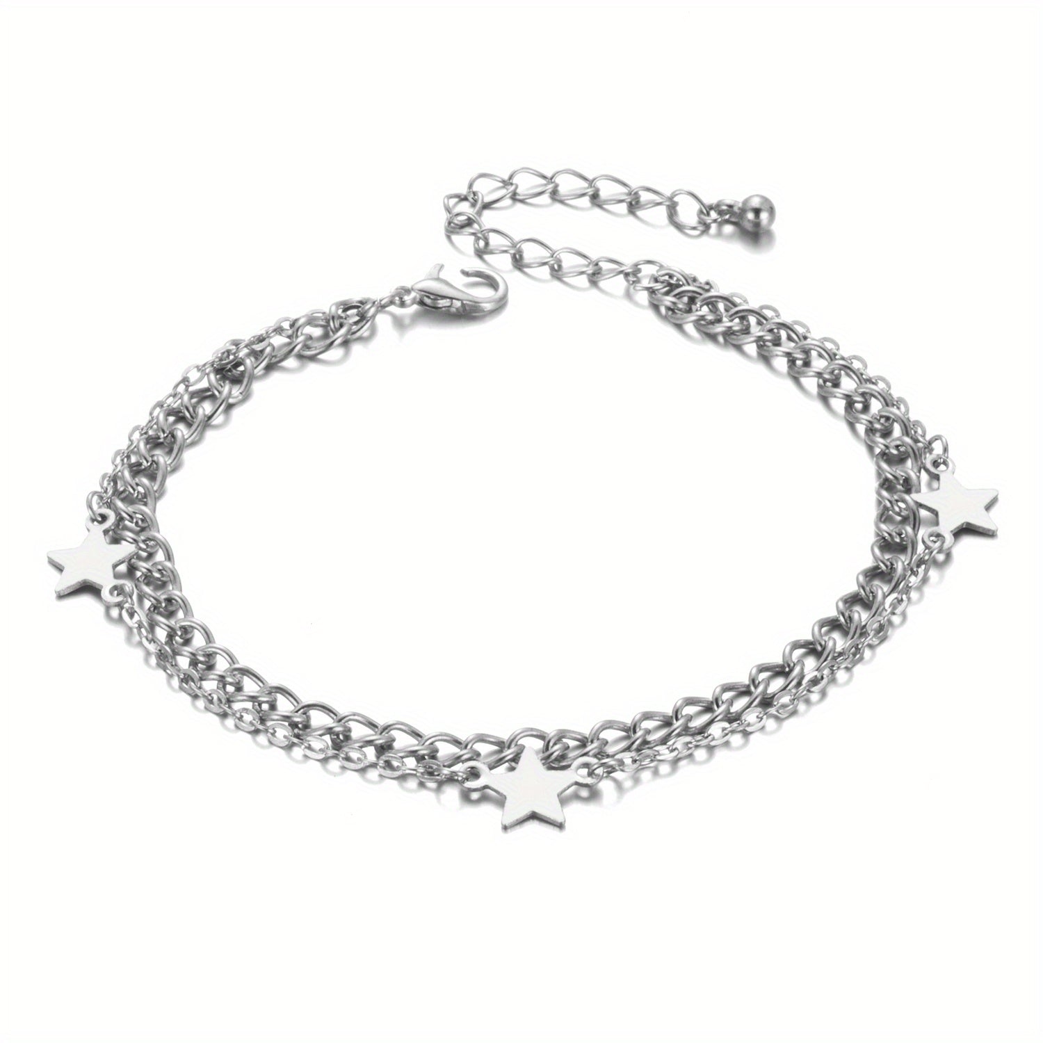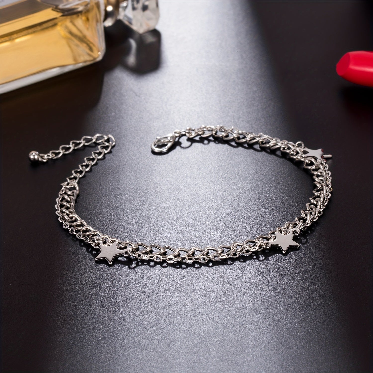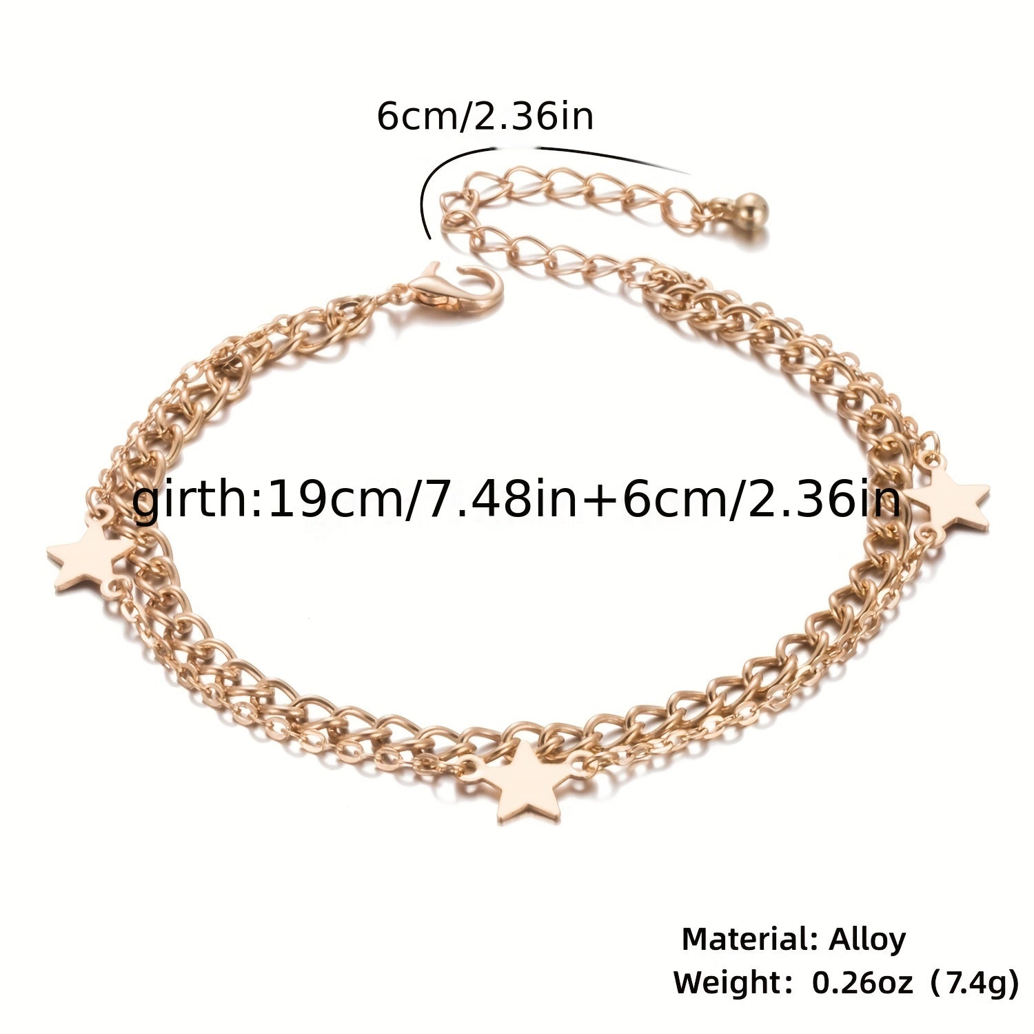 Add a touch of minimalist style to your ankle with this metal thin chain anklet featuring star shape beads. It's a perfect accessory for any outfit.