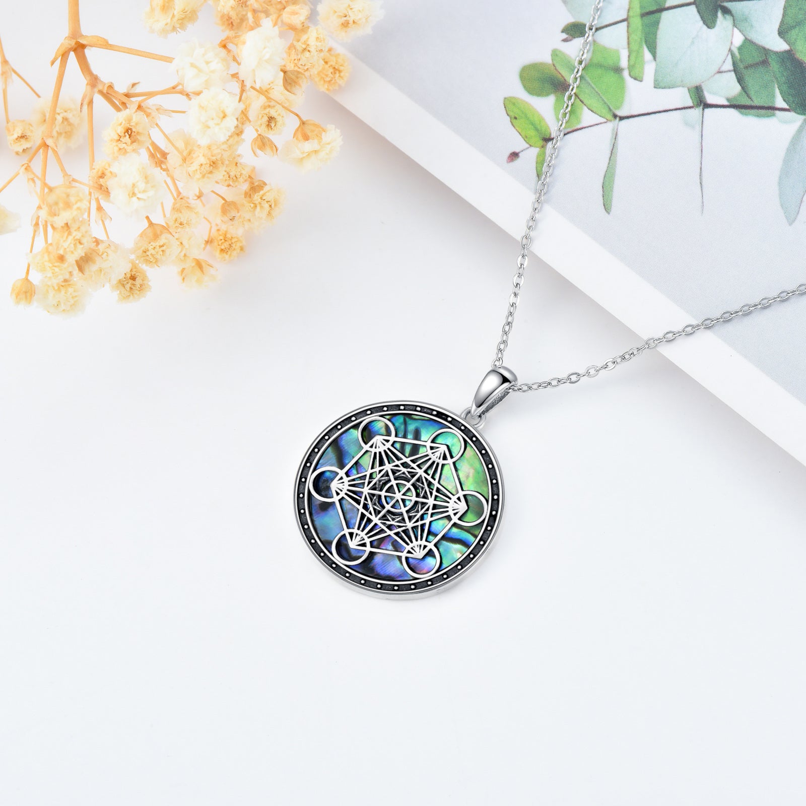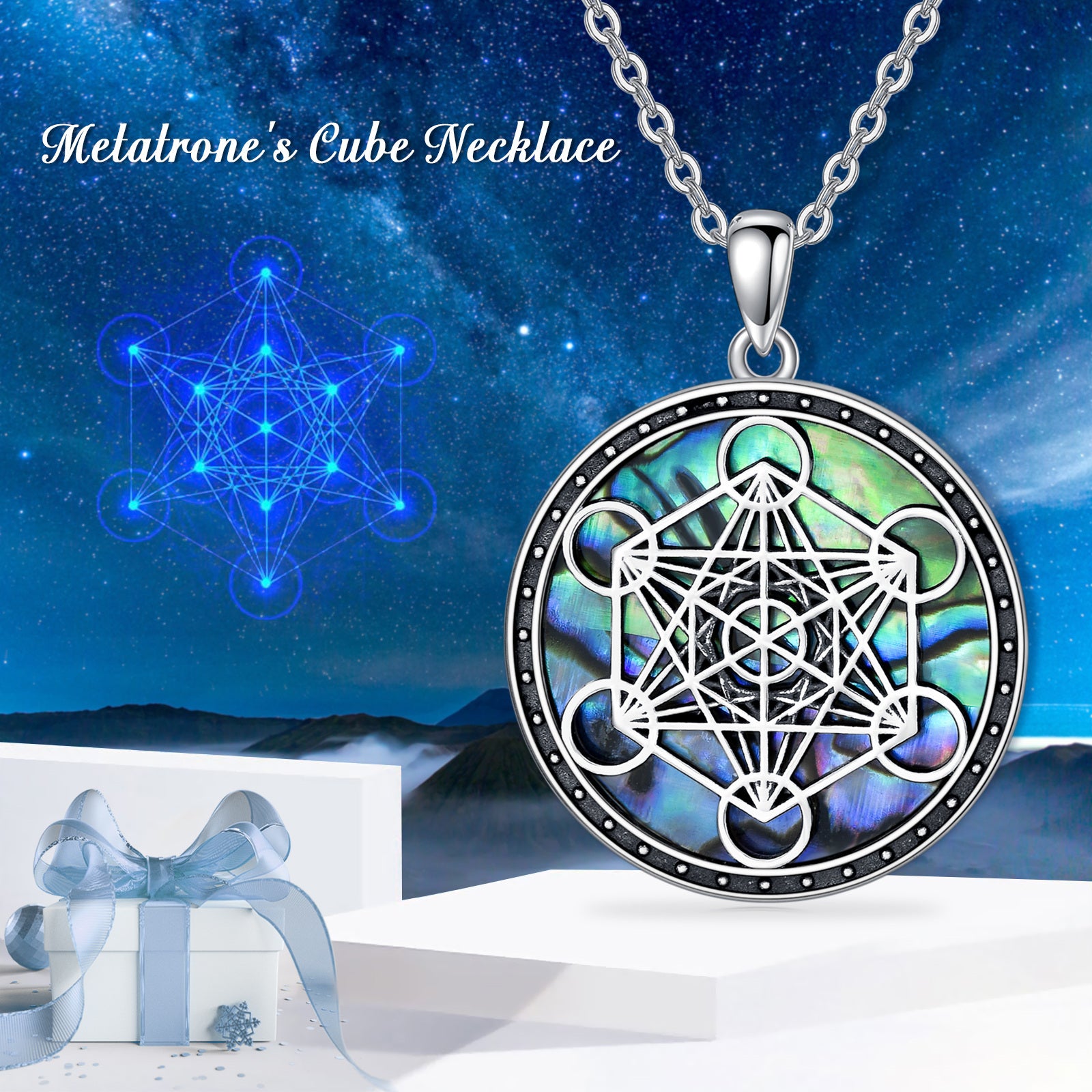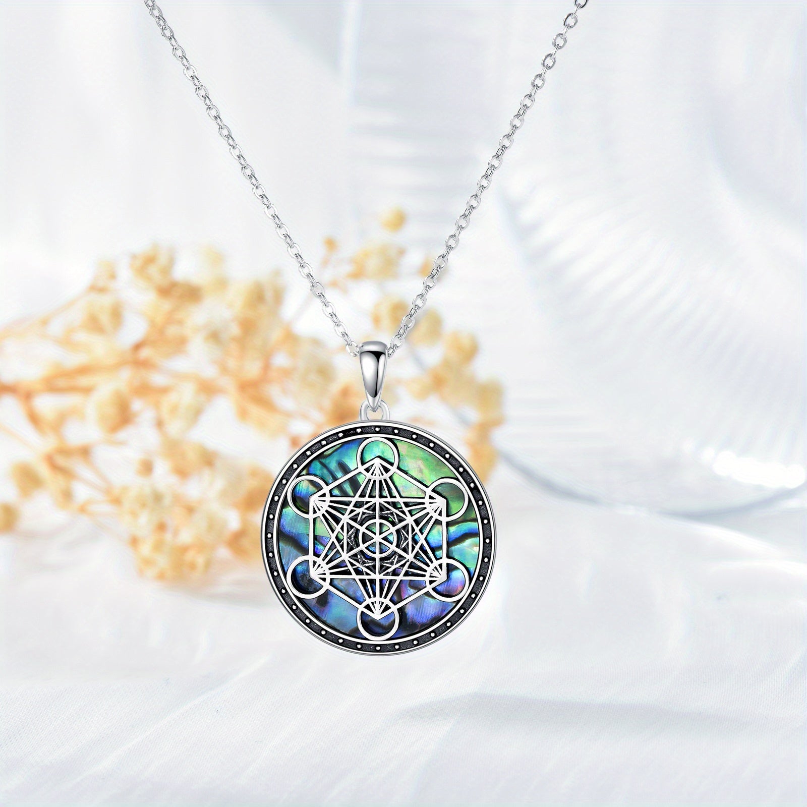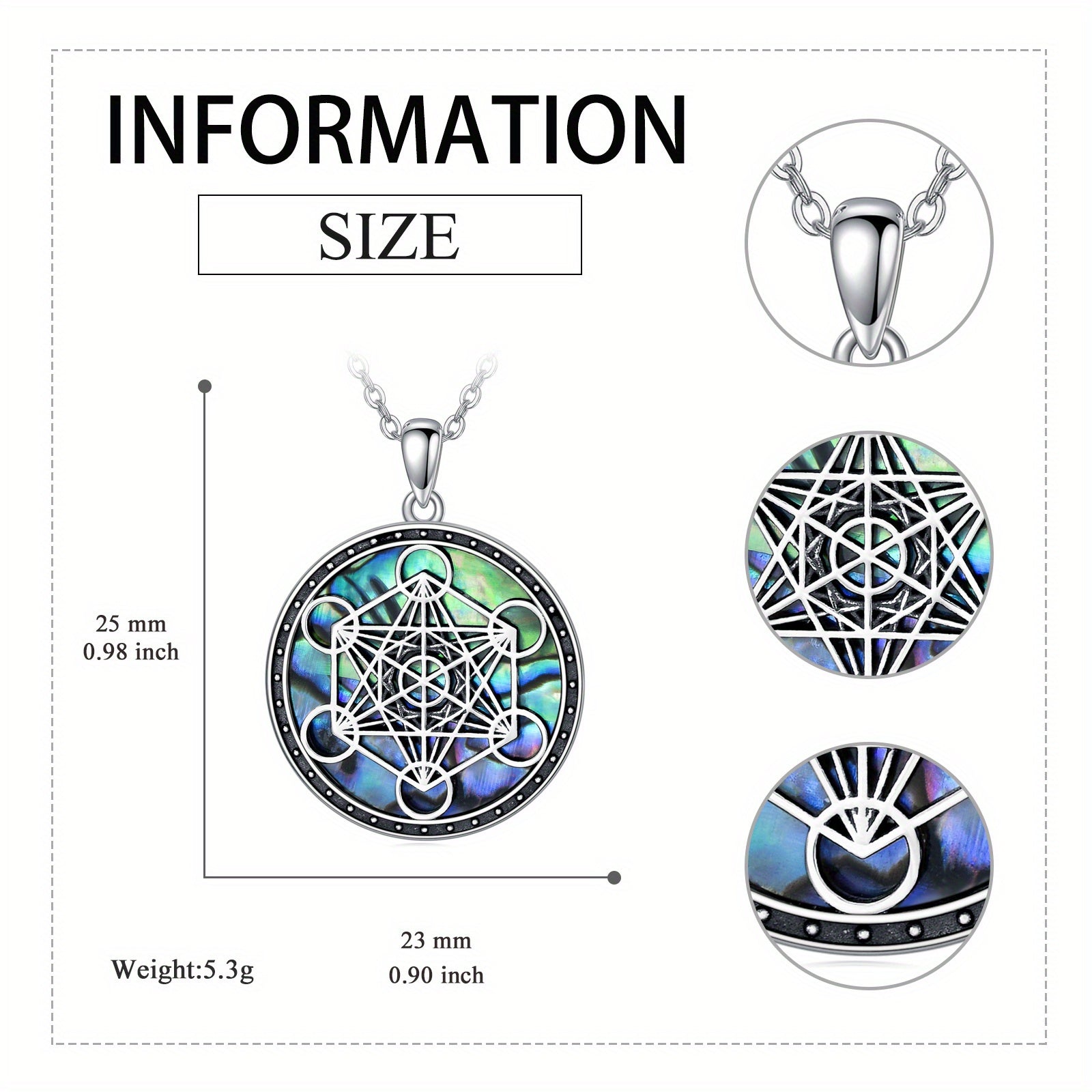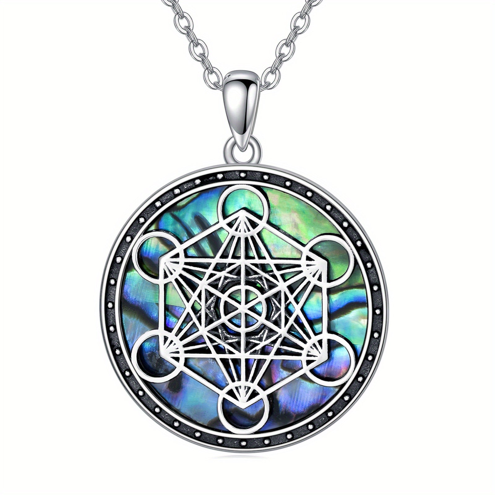 Elevate your spiritual connection with this Metatron Cube pendant necklace featuring an Abalone Shell. Perfect for meditation and sacred geometric enthusiasts.
