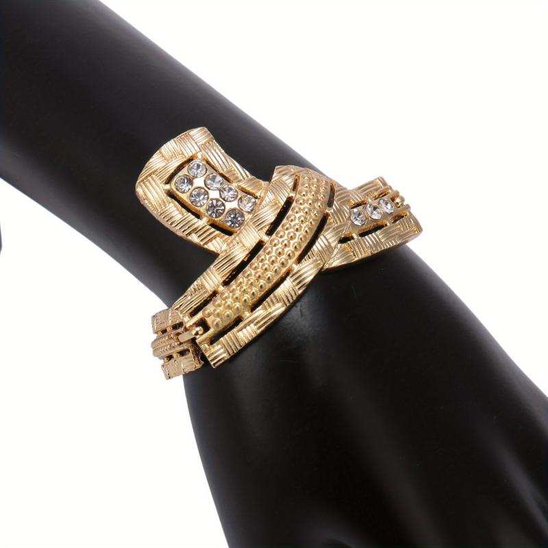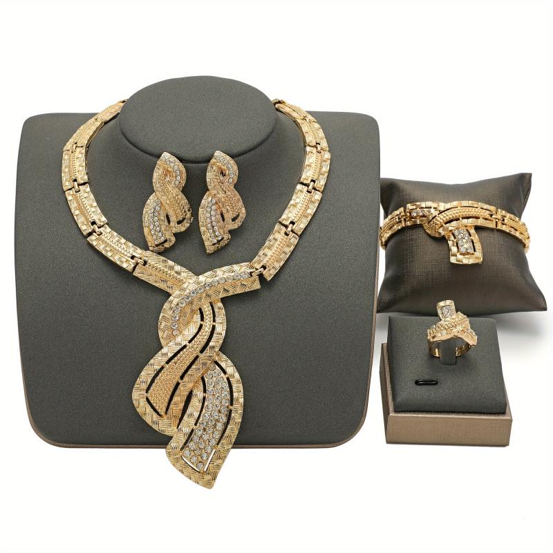 This stunning jewelry set is inspired by Middle Eastern designs, featuring intricate details and a luxurious golden and crystal color scheme. Perfect for weddings, Mother's Day, or special occasions.