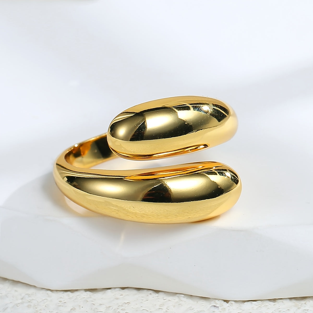 Add a touch of elegance with this minimalist wedding band ring for girls. Made with 18K plated metal, this open design ring is perfect for any occasion.