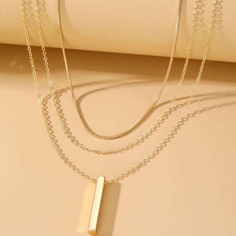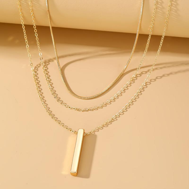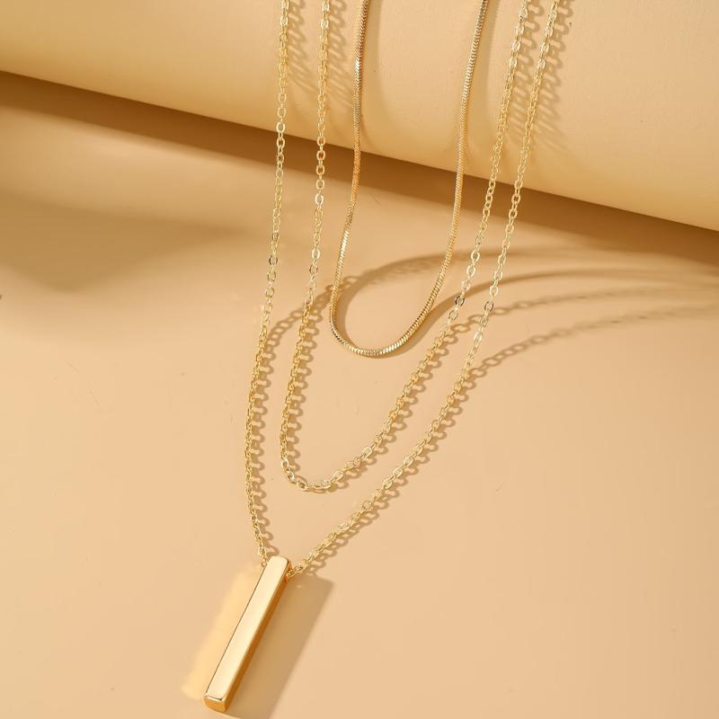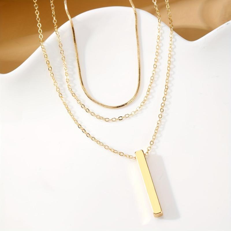 Add a touch of elegance to your outfit with this minimalist long bar pendant necklace featuring a snake bone chain. Perfect for women who appreciate understated style.