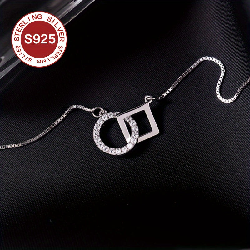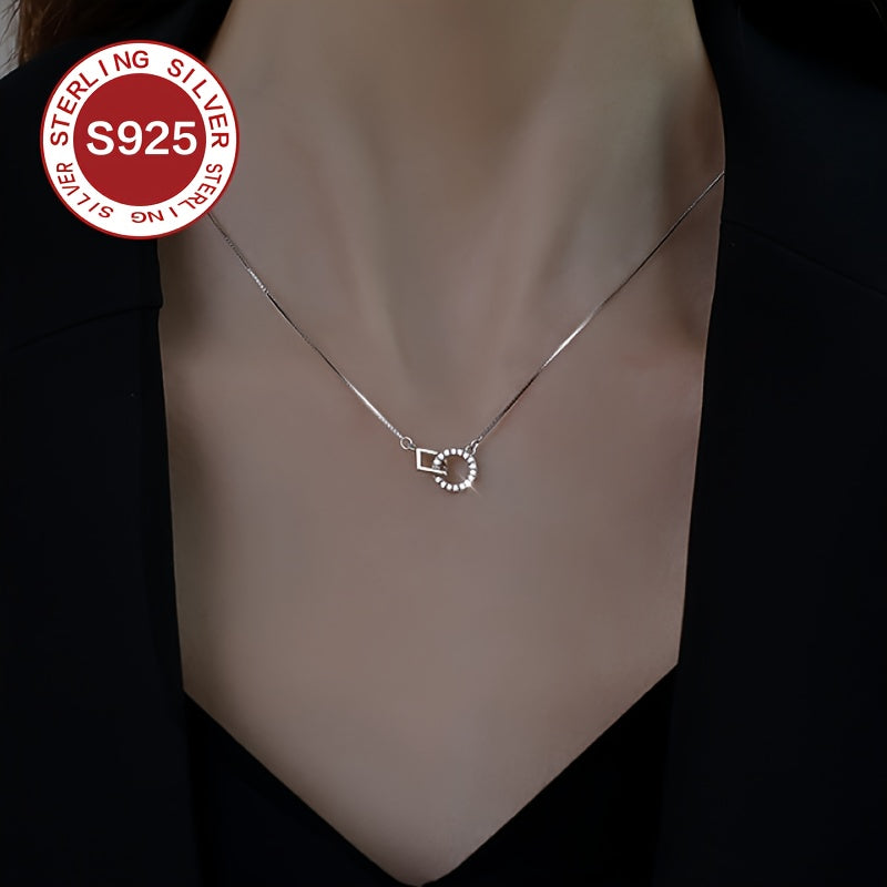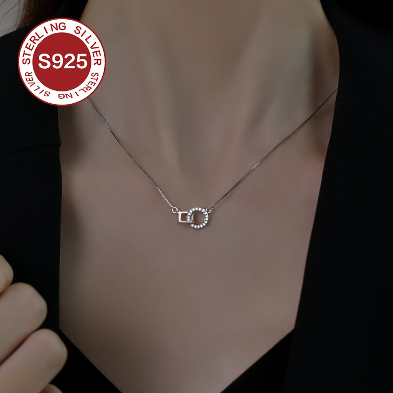 This elegant necklace features a minimalist design with interlocking round shapes, made of 925 hypoallergenic material. It is perfect for daily wear and makes a great gift for women, especially on Mother's Day.
