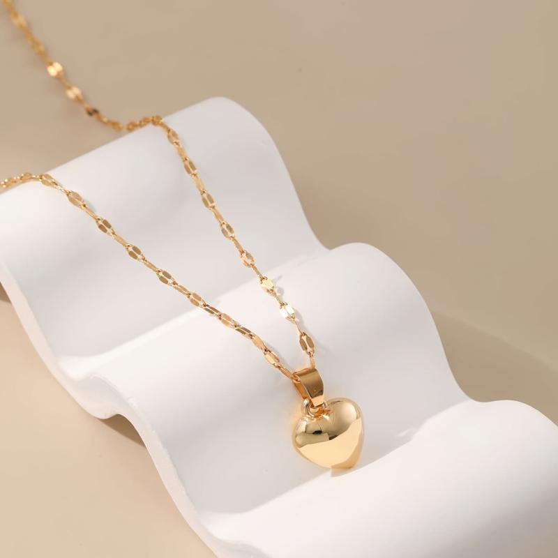 This elegant necklace features a minimalist heart pendant in golden tone KC plated finish. It is perfect for everyday wear and adds a touch of charm to any outfit.