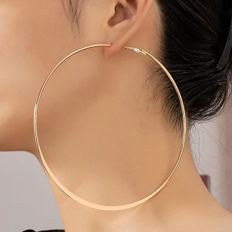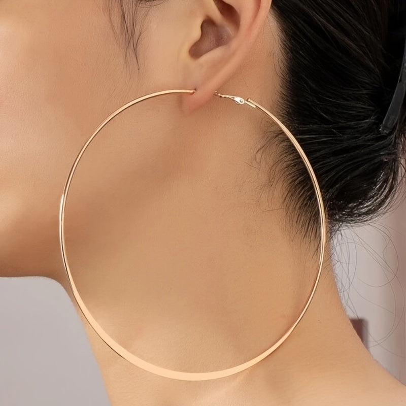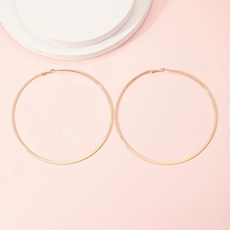 Add a touch of elegance to your outfit with these minimalist hoop earrings. Perfect for weddings or parties, these oversized golden earrings are a must-have accessory.