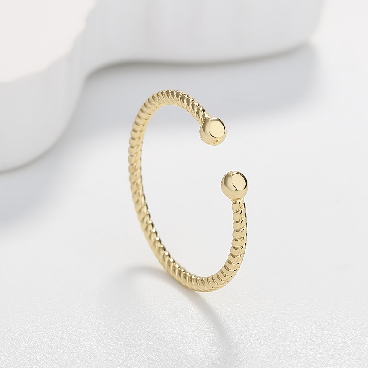 This elegant ring features a round bead design in 14K gold plating. It is adjustable to fit various finger sizes and makes a perfect holiday decorative piece for women and girls.