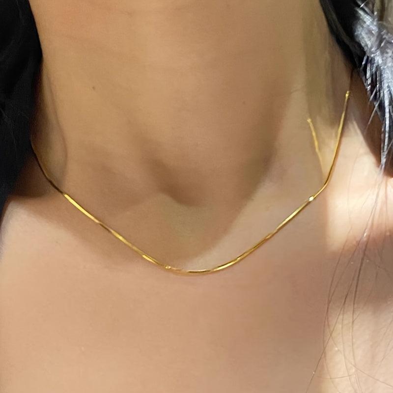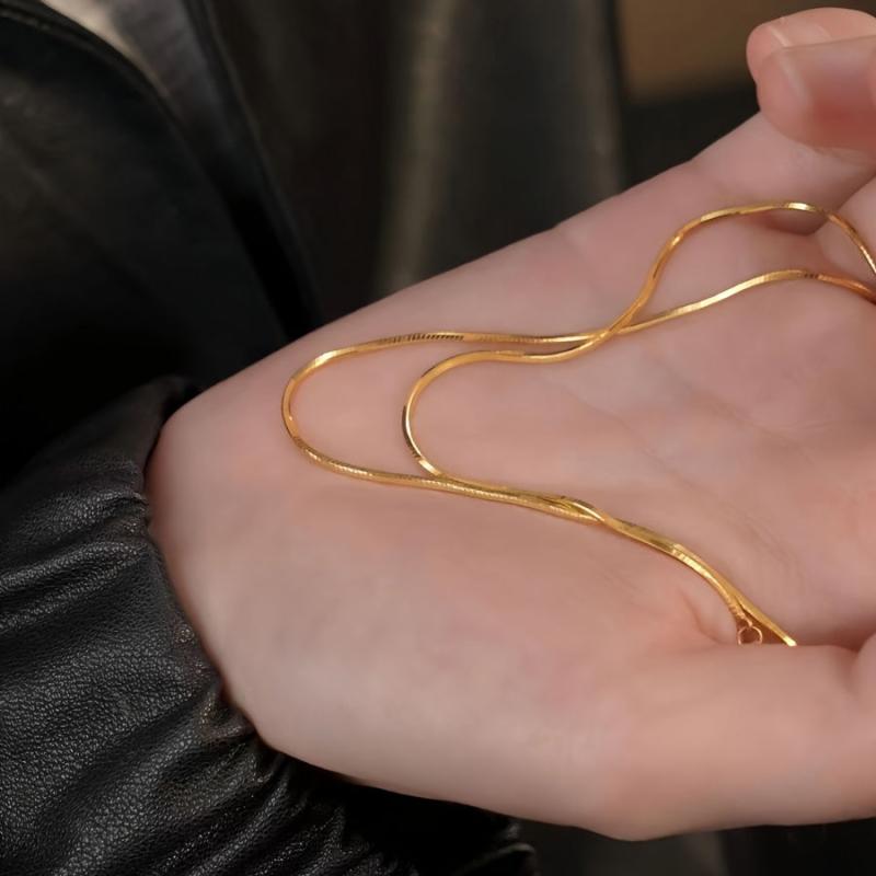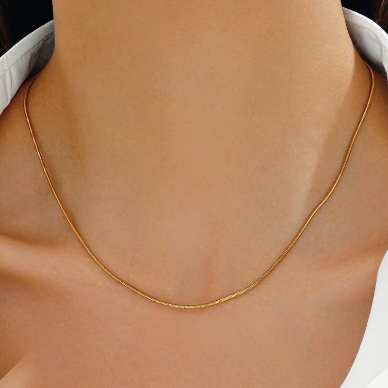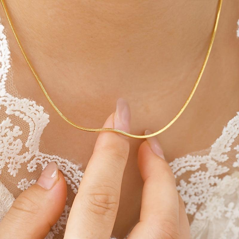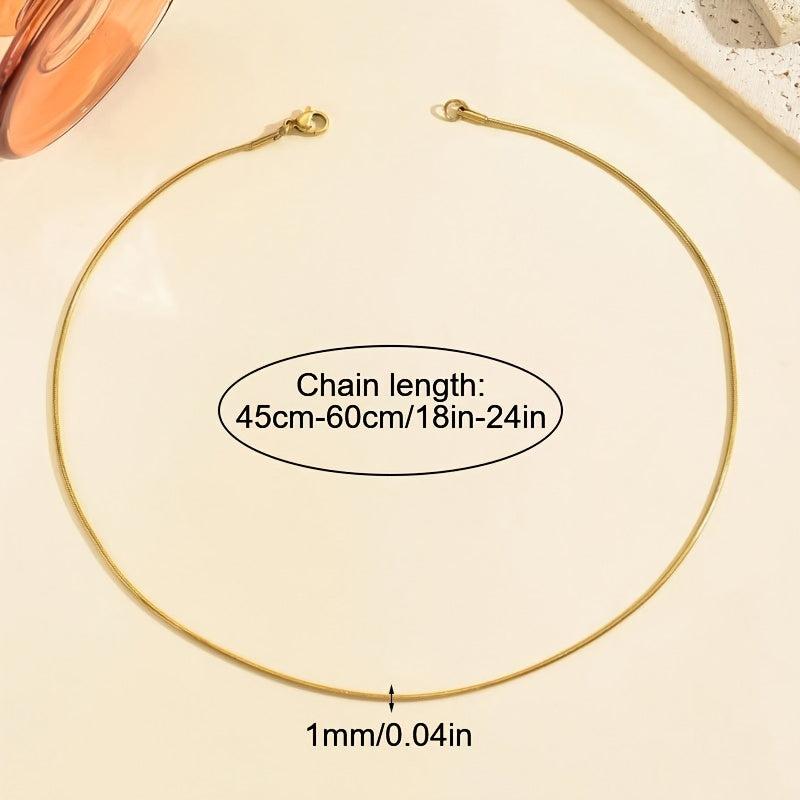 This minimalist snake chain necklace is a versatile piece of jewelry suitable for everyday wear or special occasions. It features an adjustable length of 45-72 inches and a durable golden tone finish.