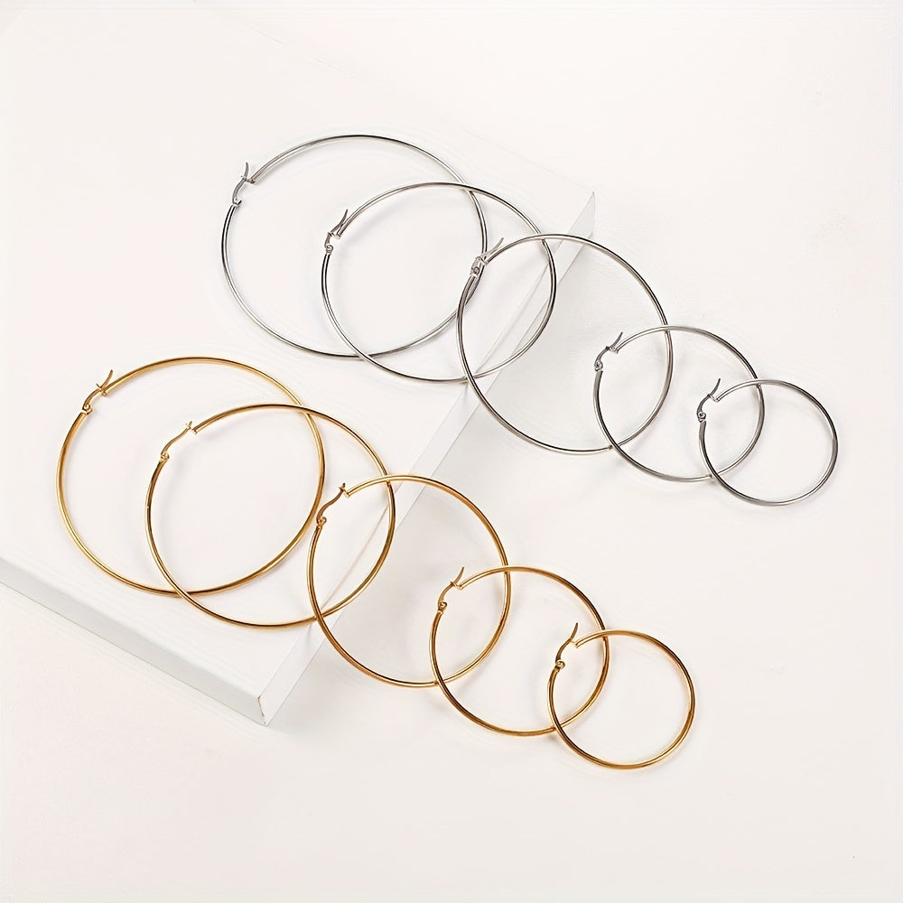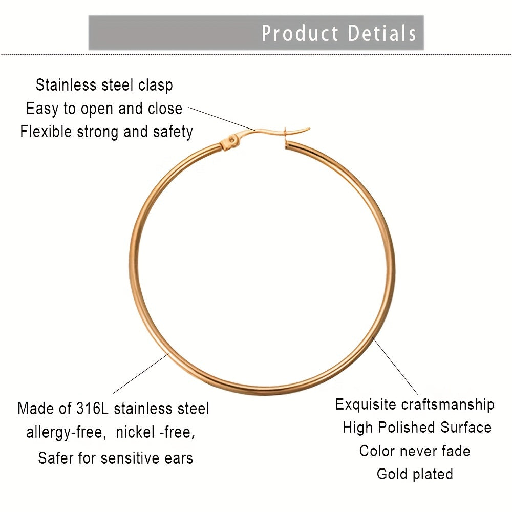 Upgrade your jewelry collection with these minimalist style hoop earrings. Made of stainless steel with 14K gold plating, these earrings are perfect for daily casual wear.